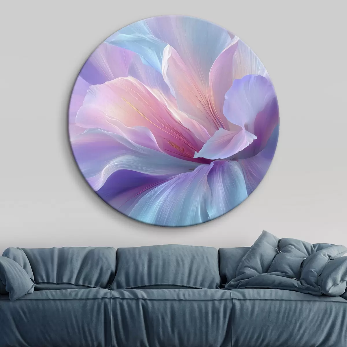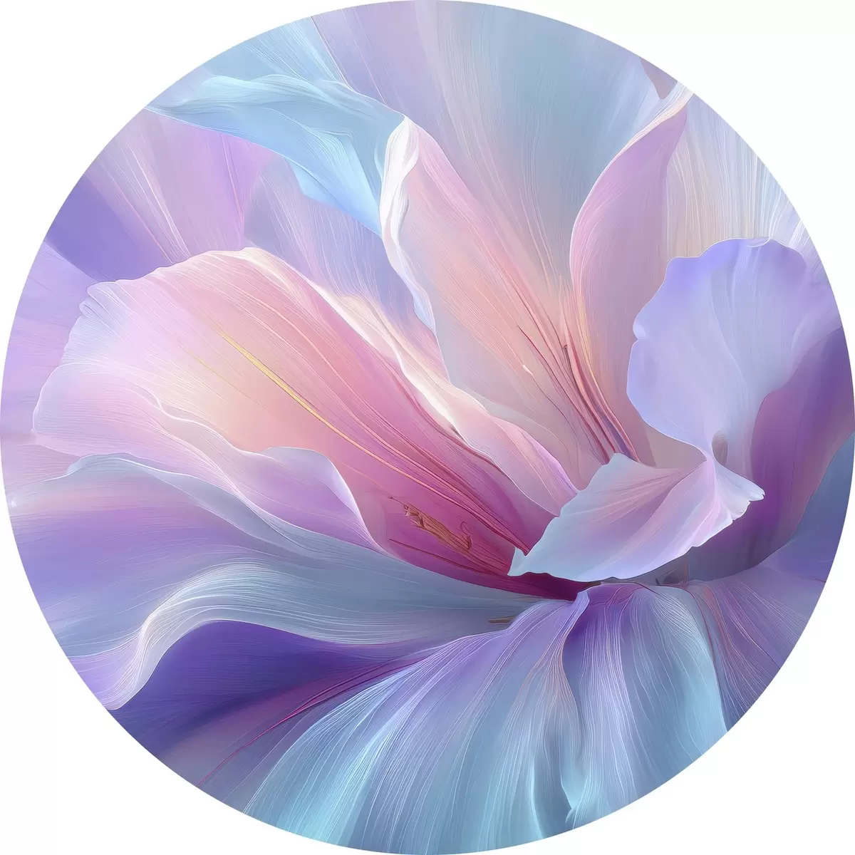 Apaļas gleznas delikāts fantāzijas zieds ar ziedlapām violetos, zilos un rozā toņos. r45710
