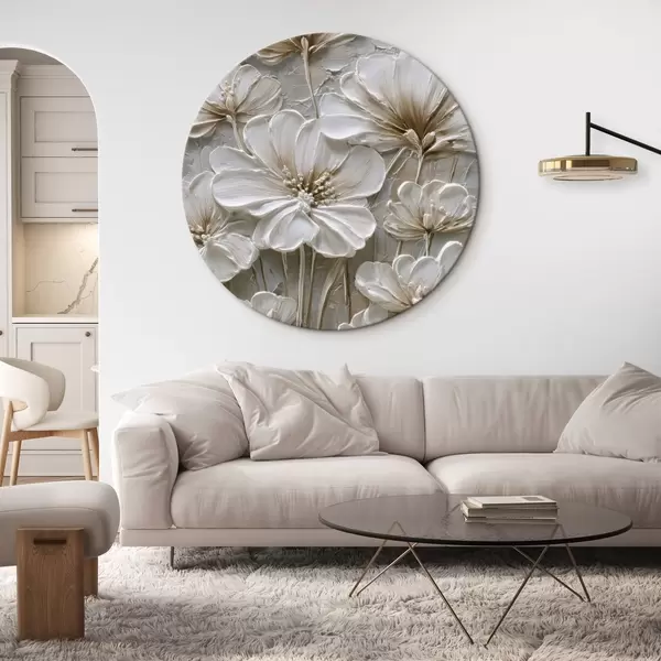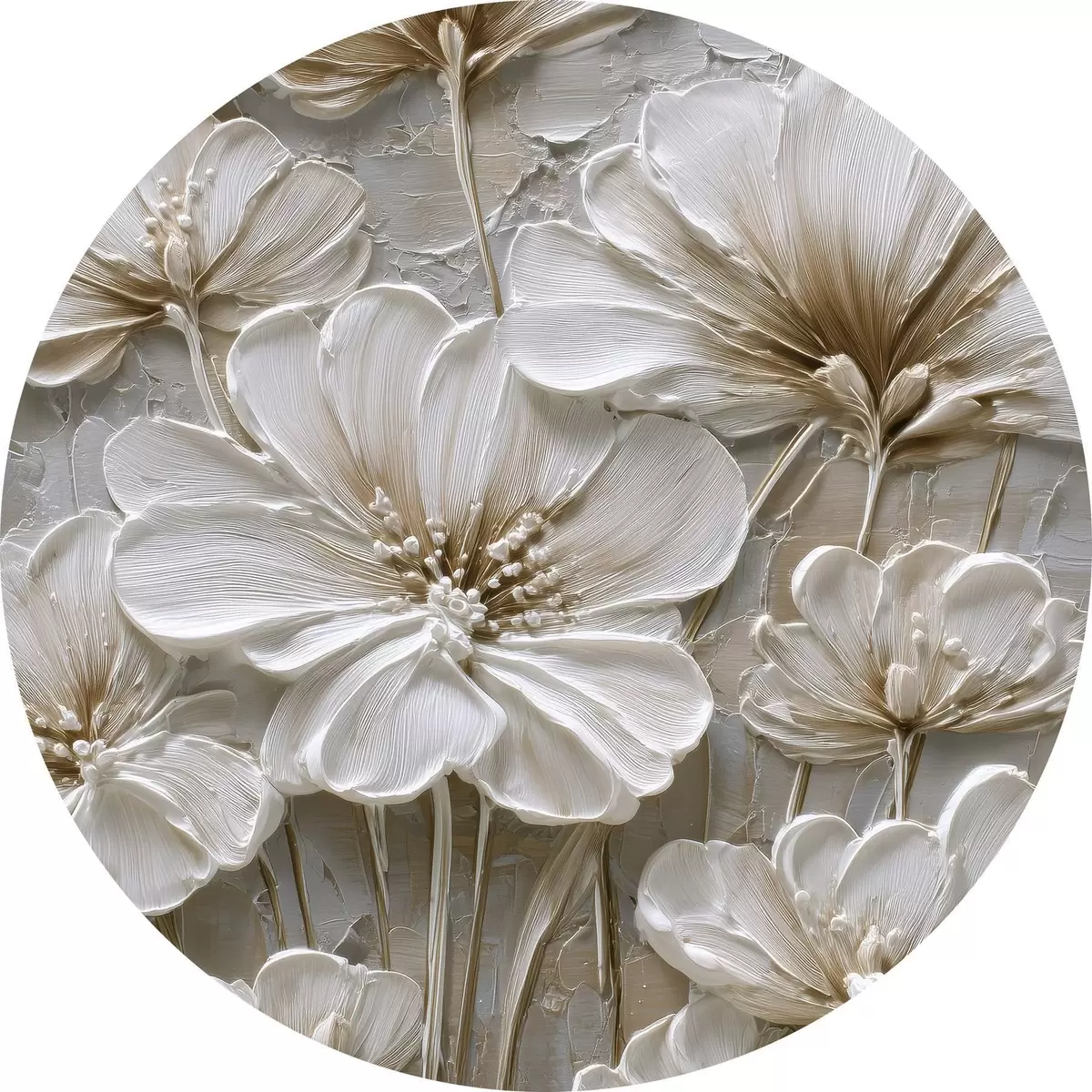 Apaļas gleznas krēmkrāsas ziedi ar imitētu impasto stilu r45712