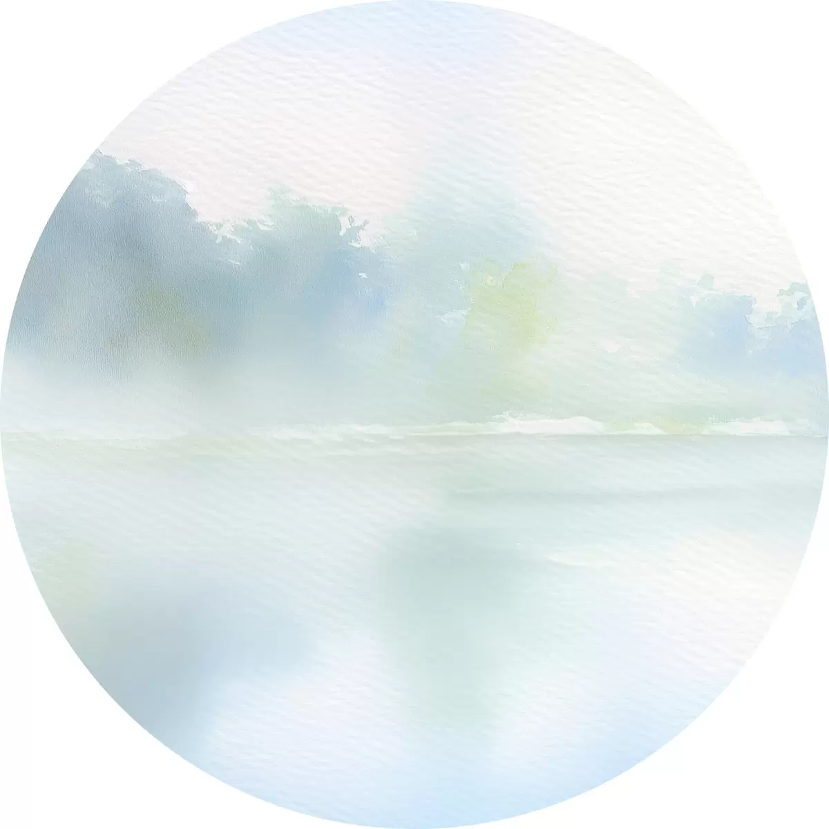 Apaļas gleznas akvareļu ezers zilos toņos r45714