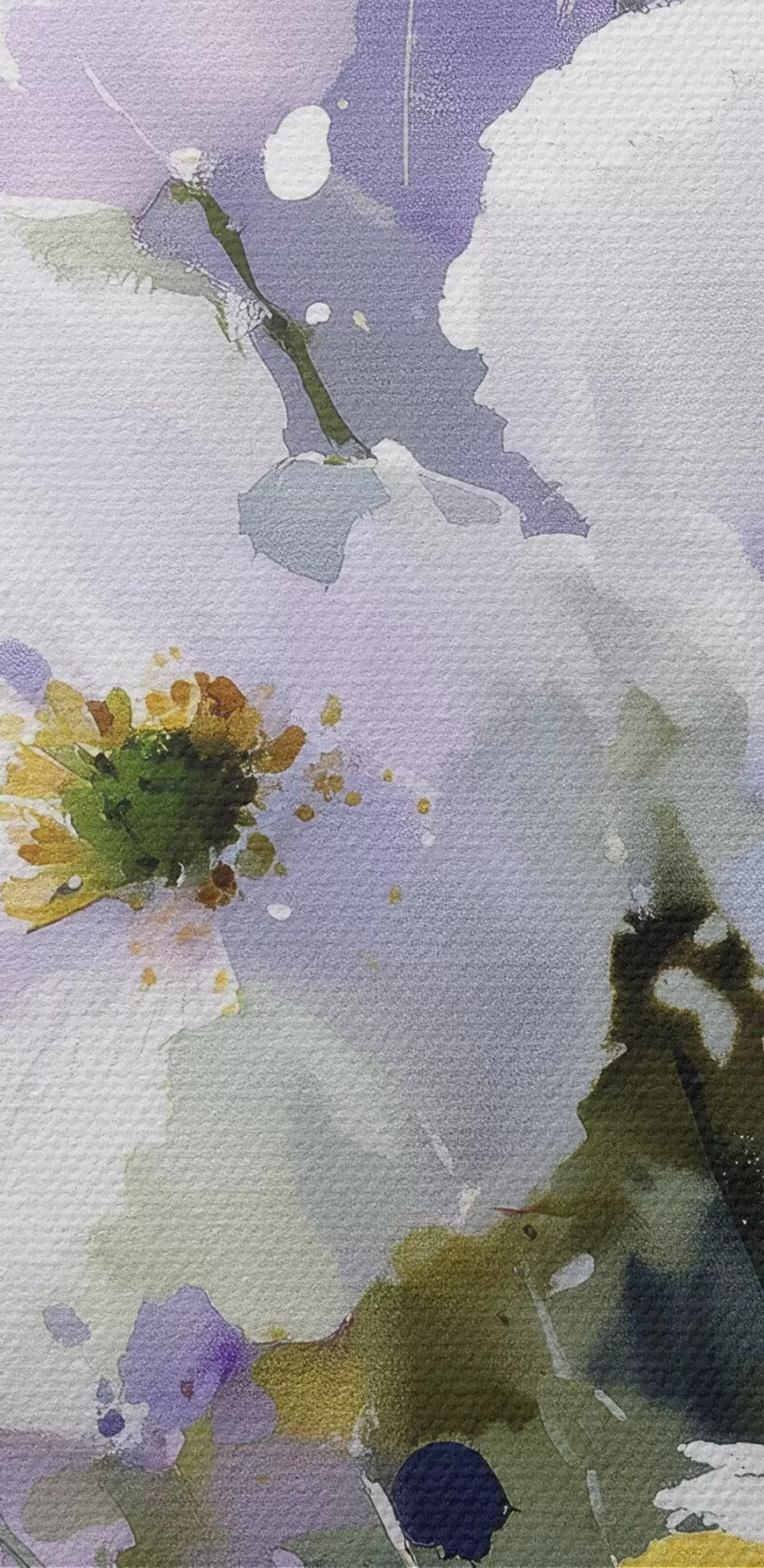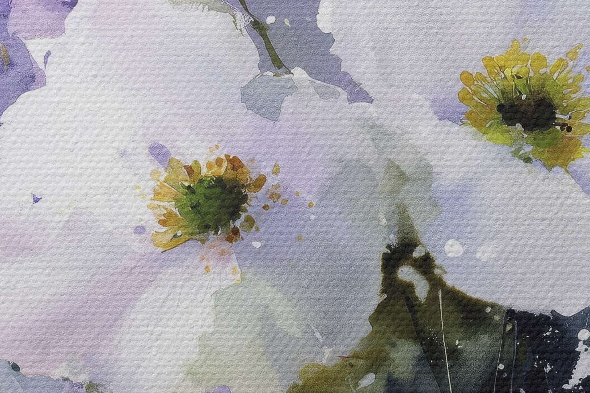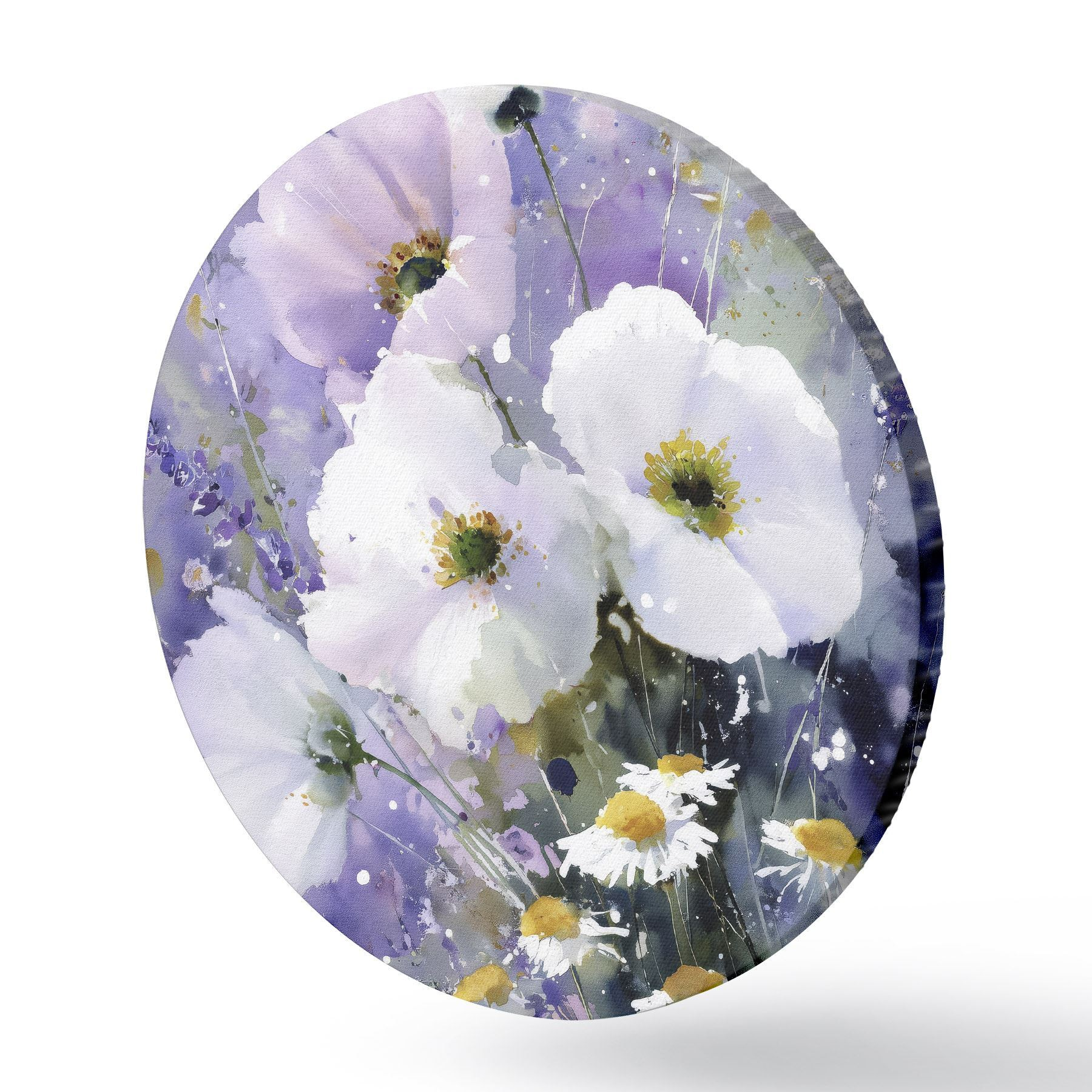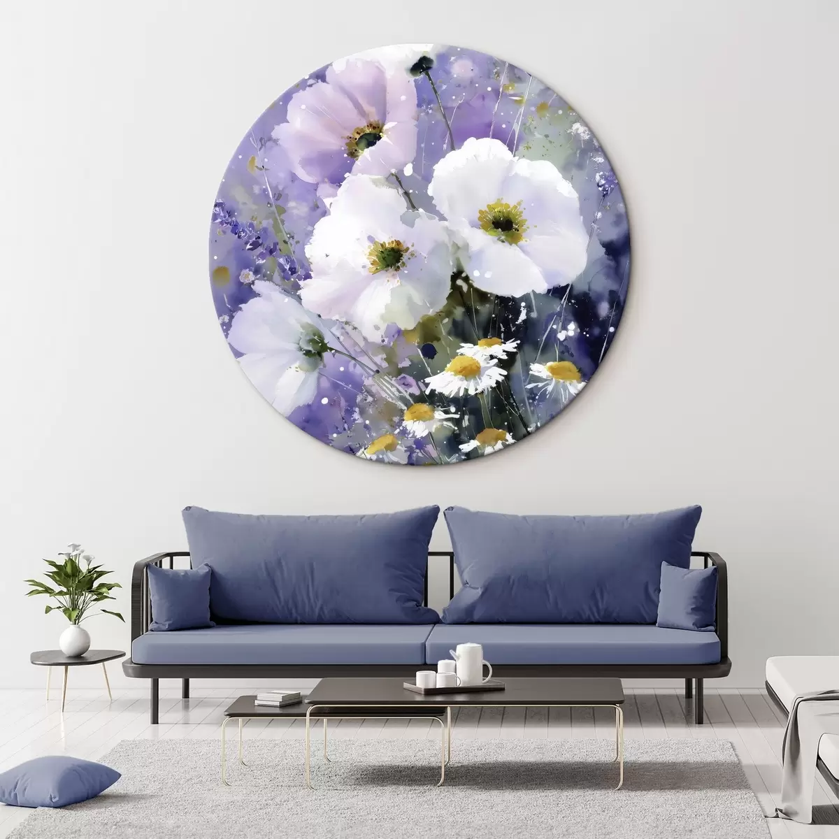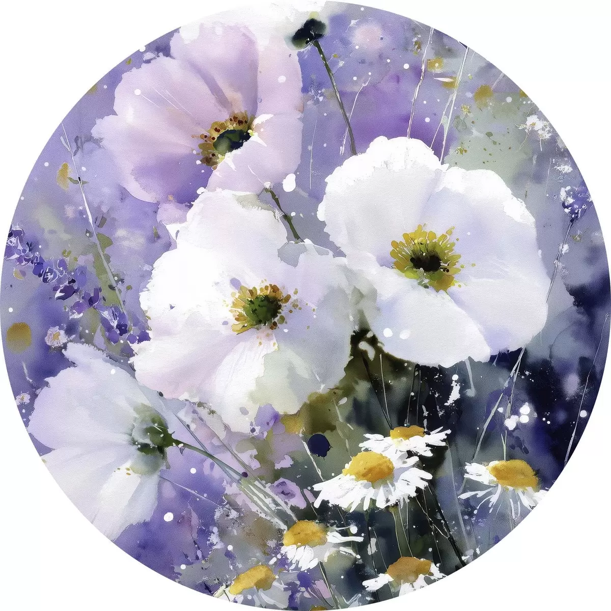 Apaļas gleznas akvareļu pušķis violetos un baltos toņos r45719