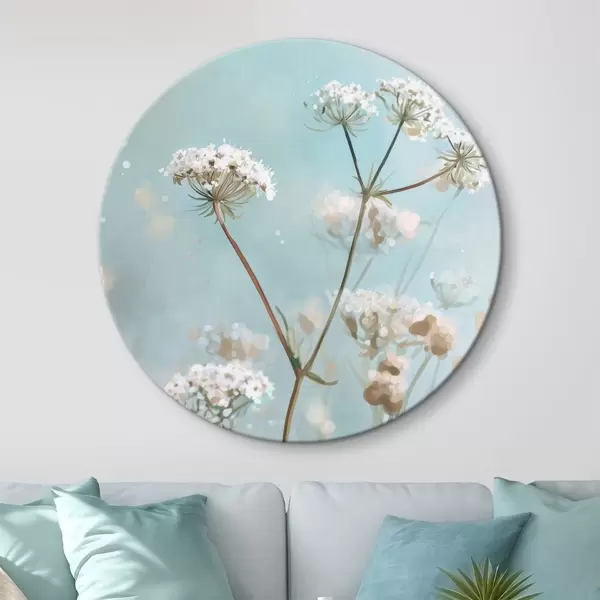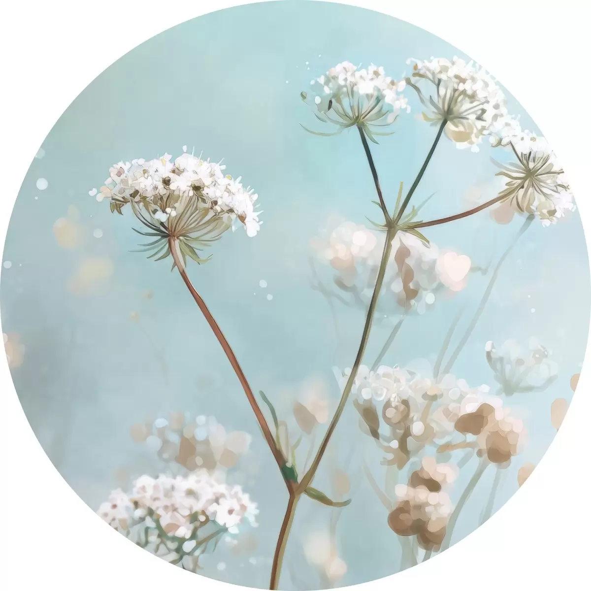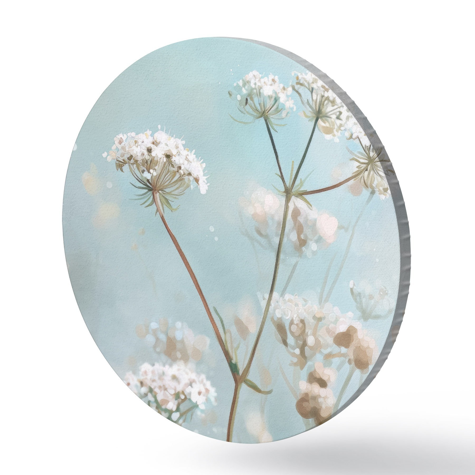 Apaļas gleznas Karalienes Annes mežģīnes ziedi akvareļa stilā uz zila fona r45722