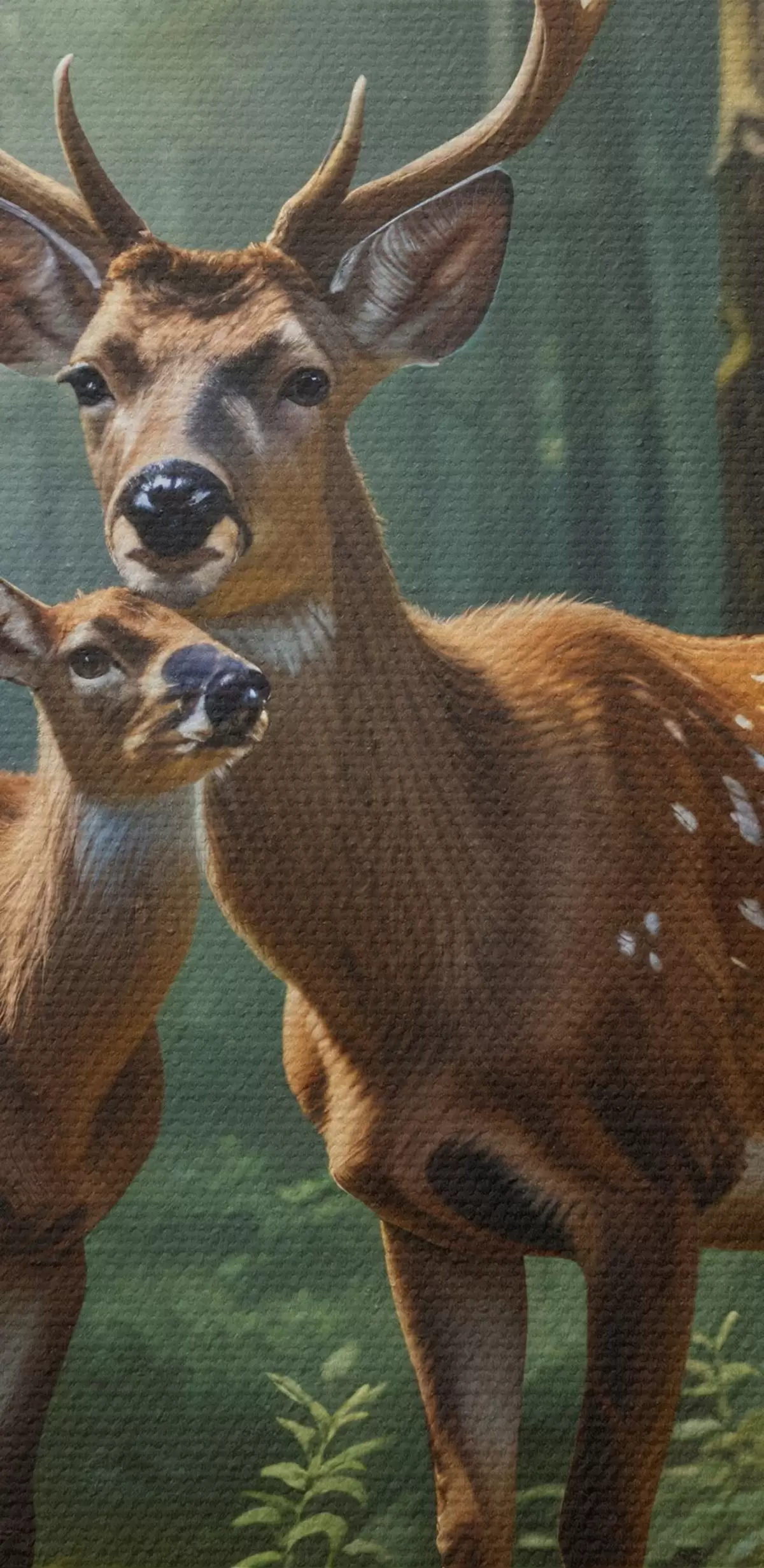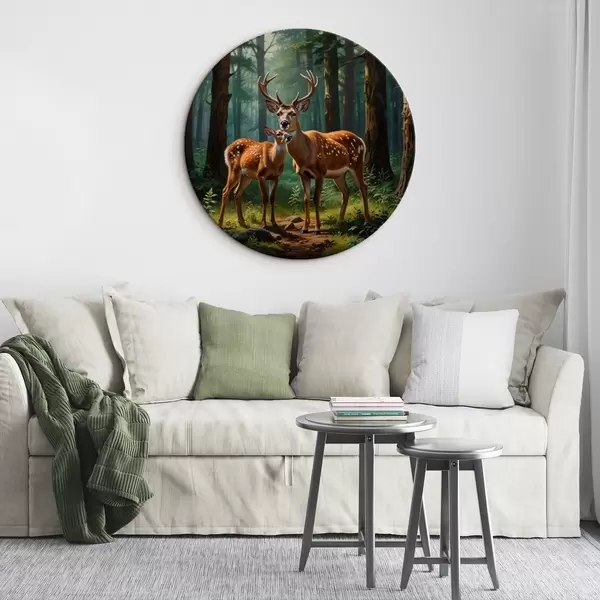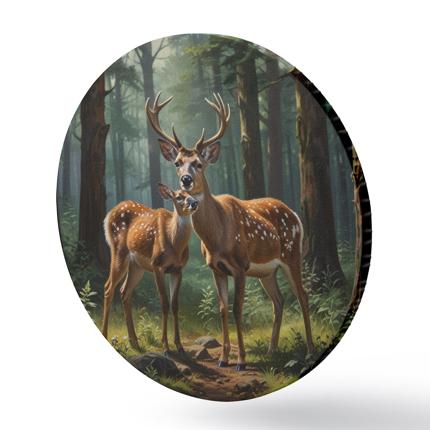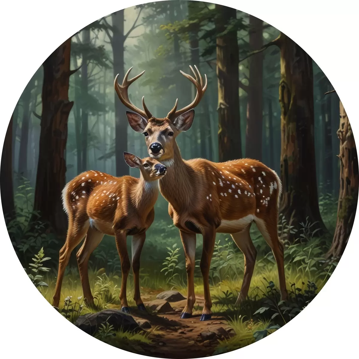 Apaļas gleznas briedis ar mazuli mežā r45732
