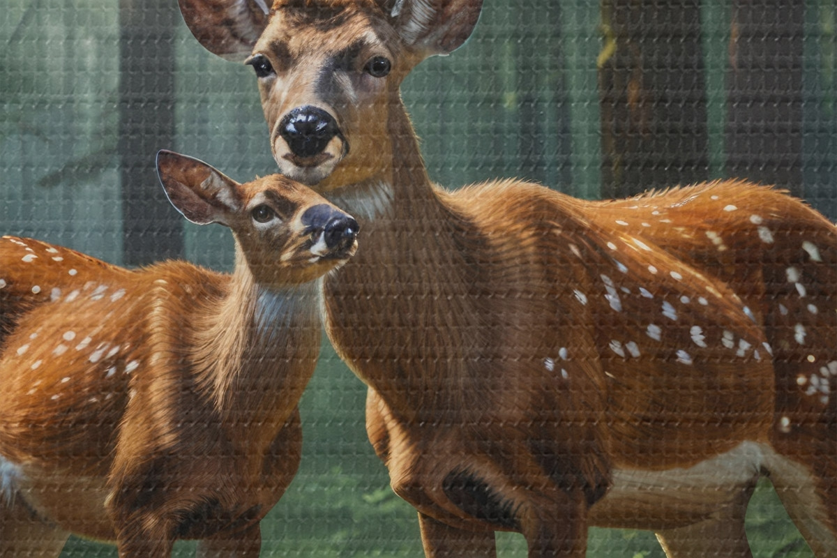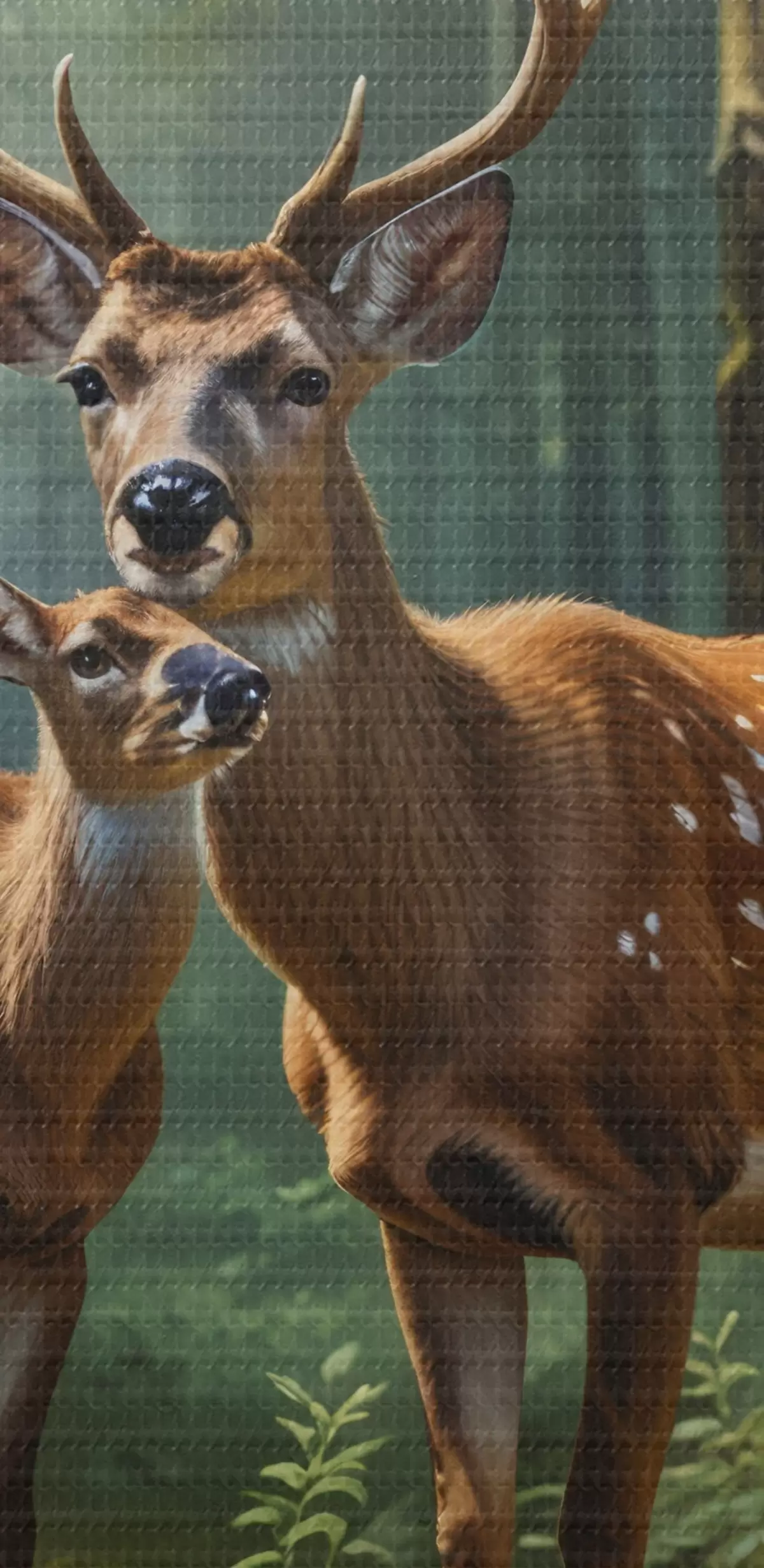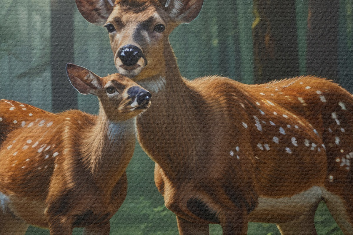 Apaļas gleznas briedis ar mazuli mežā r45732