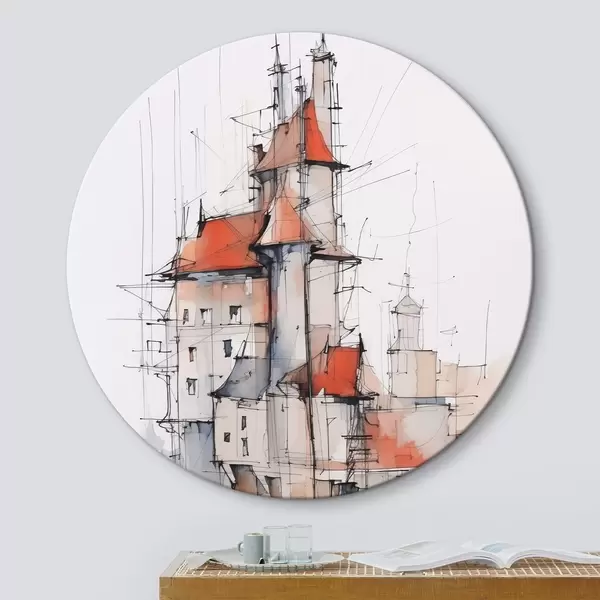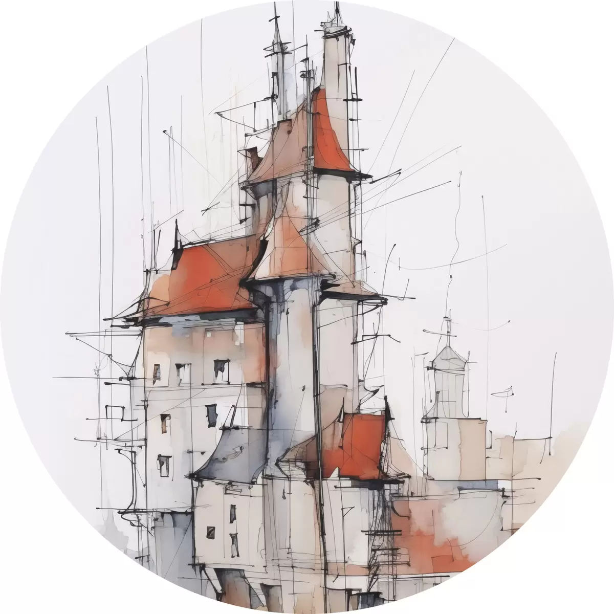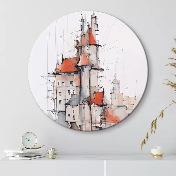 Apaļas gleznas Māju imitācijas skice un akvareļgleznojums r45764