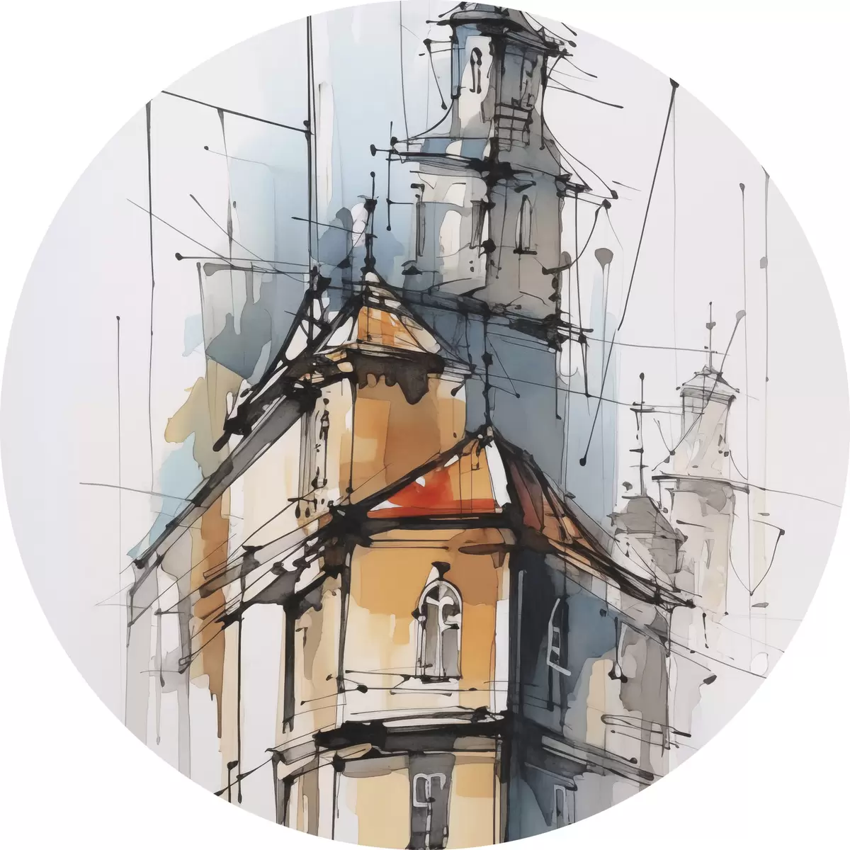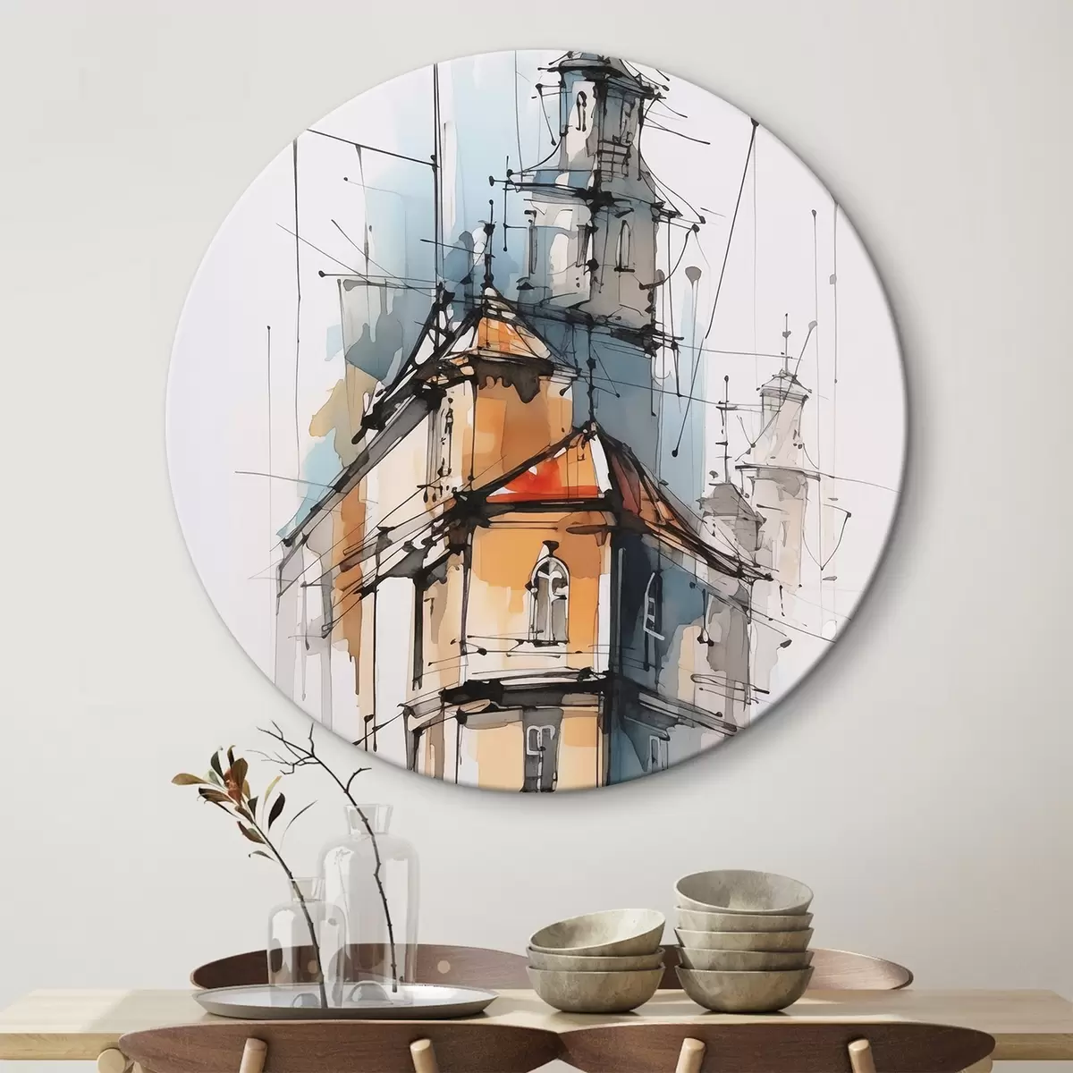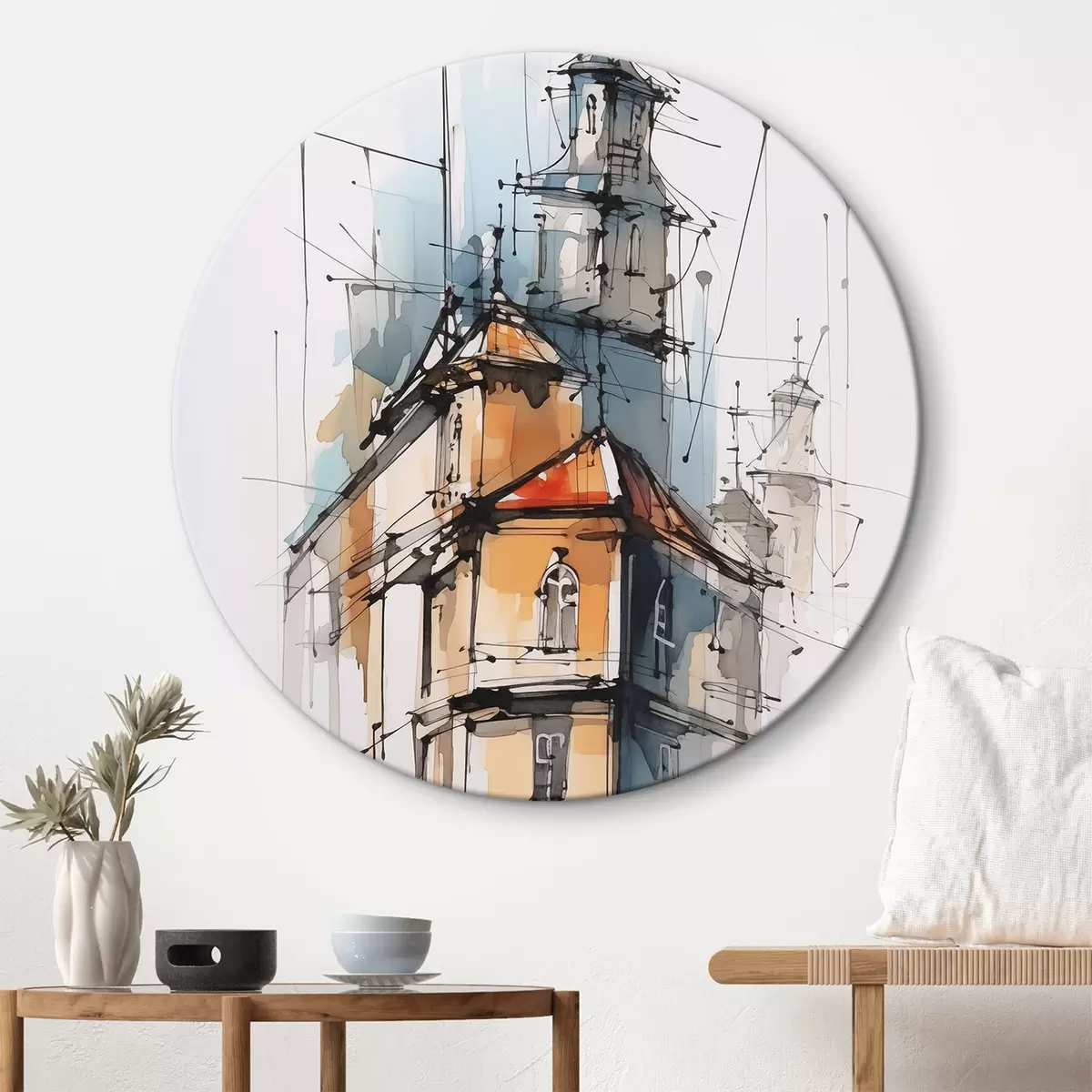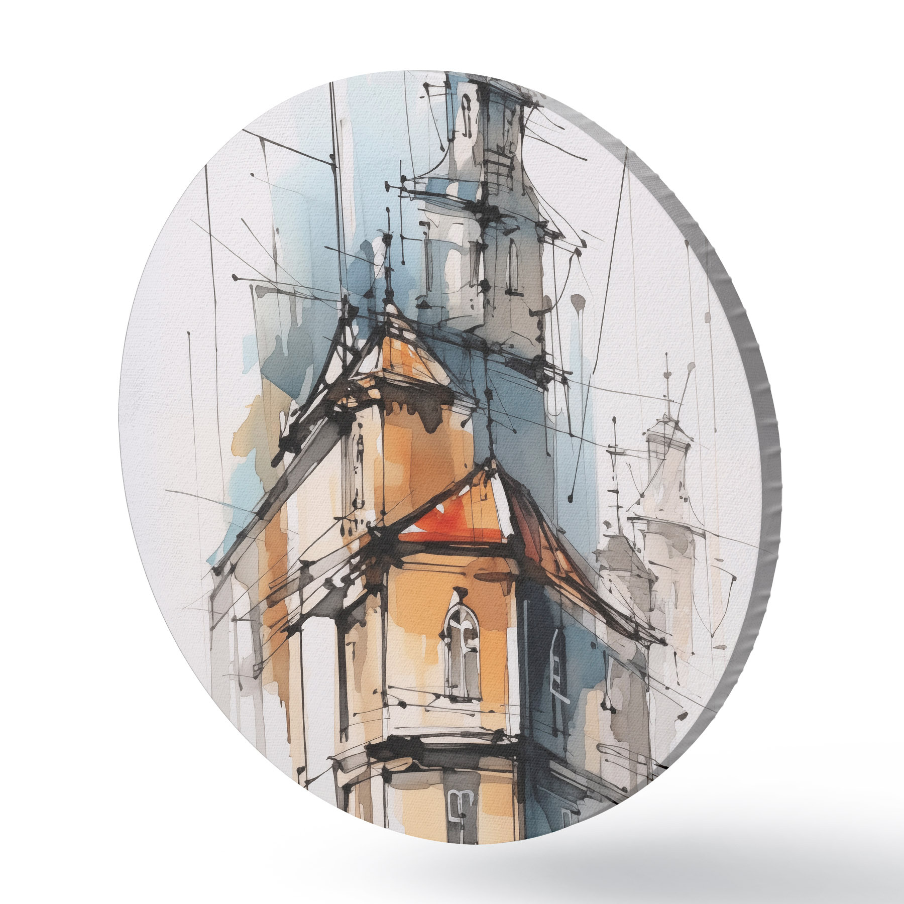 Apaļas gleznas Māju imitācijas skice un akvareļgleznojums r45765