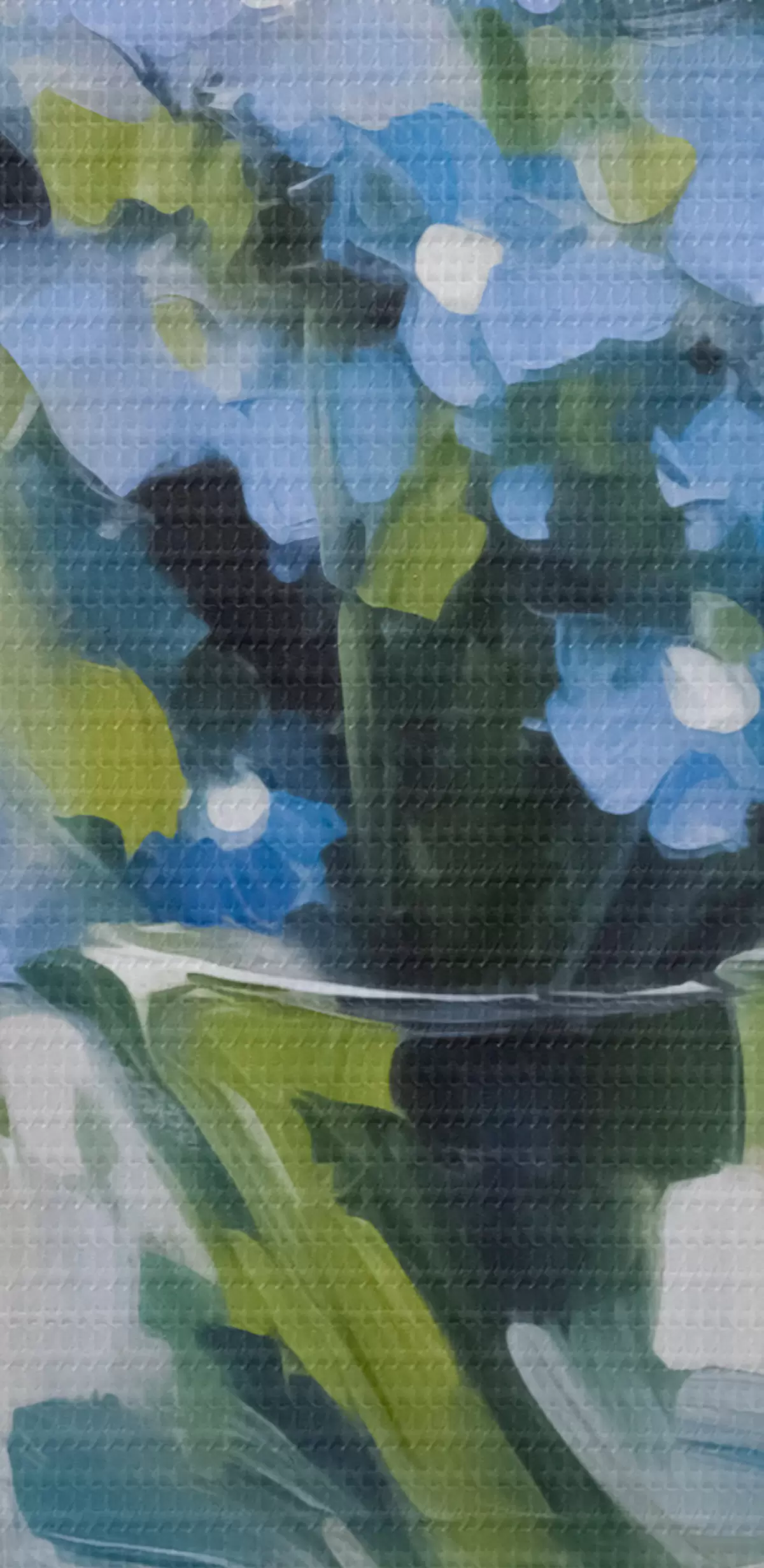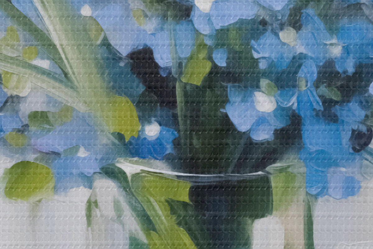 Smalkais diegu pinums uz šī audekla atgādina profesionālu mākslinieku audeklu virsmu.