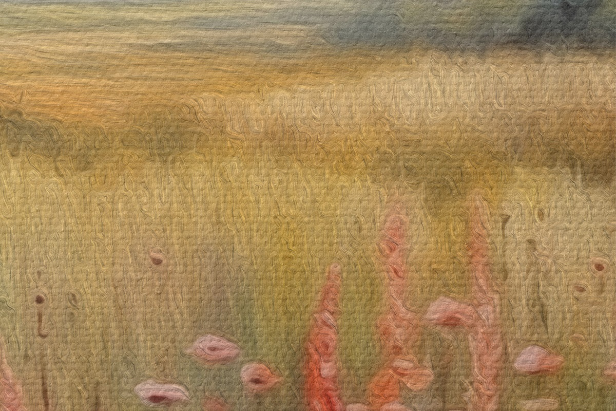 Smalkais diegu pinums uz šī audekla atgādina profesionālu mākslinieku audeklu virsmu.