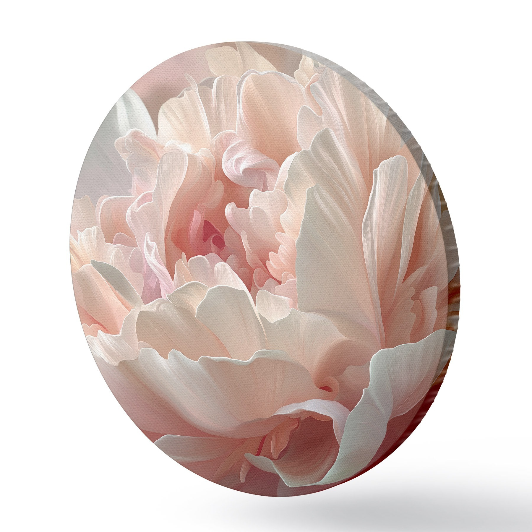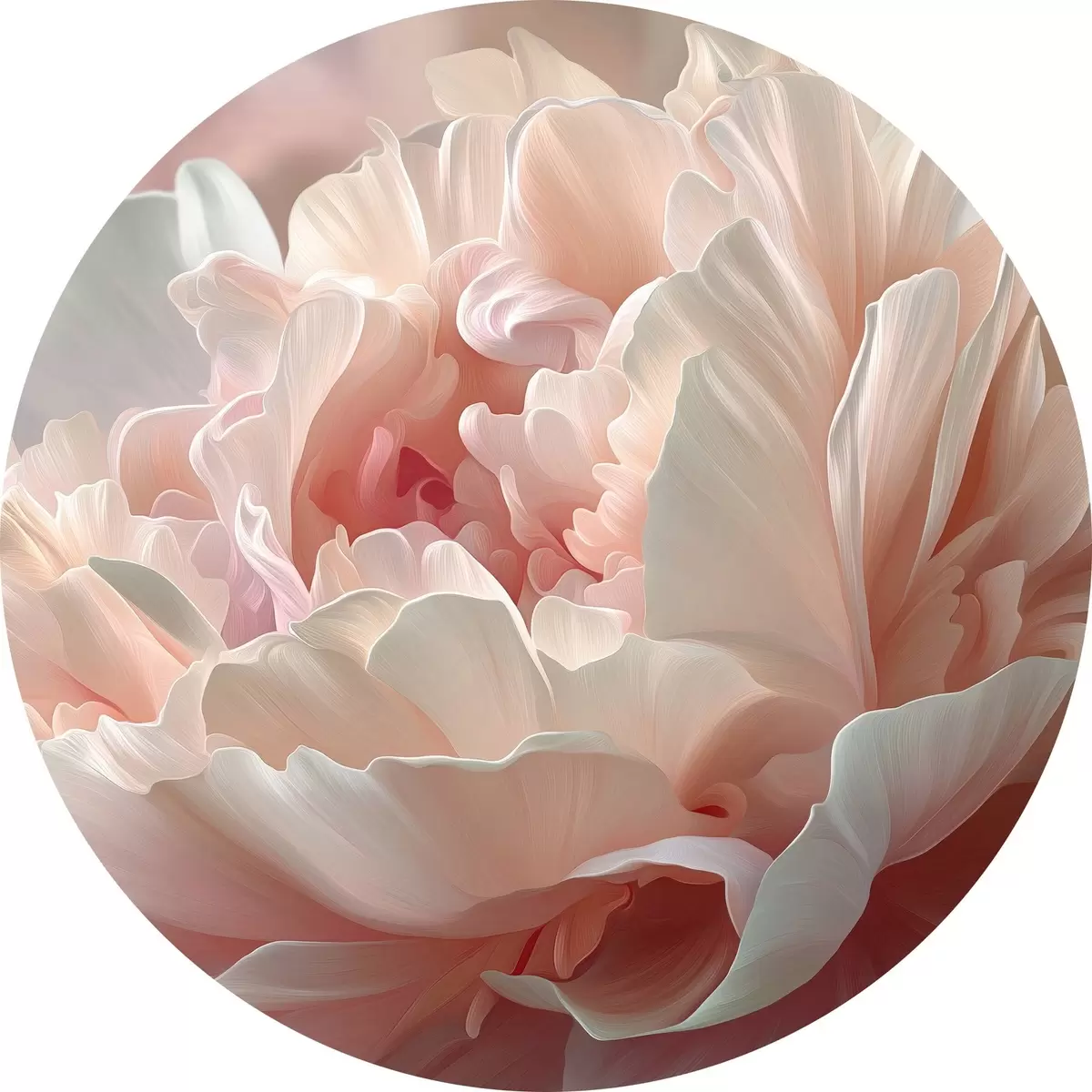 Apaļas gleznas Ziedošs peonijs rozā un smilškrāsas toņos r45825