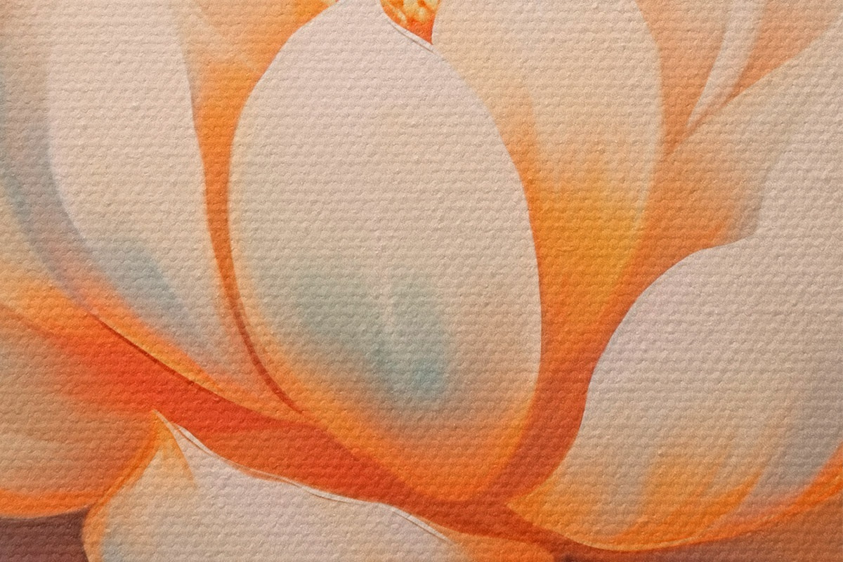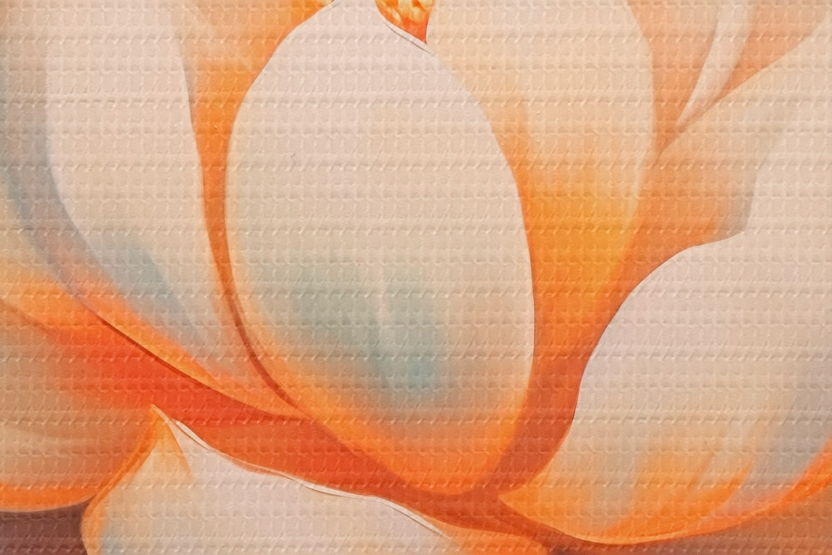 Smalkais diegu pinums uz šī audekla atgādina profesionālu mākslinieku audeklu virsmu.