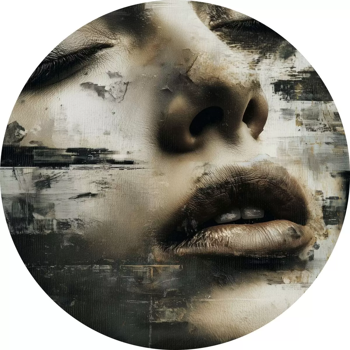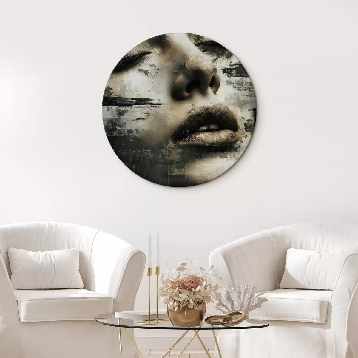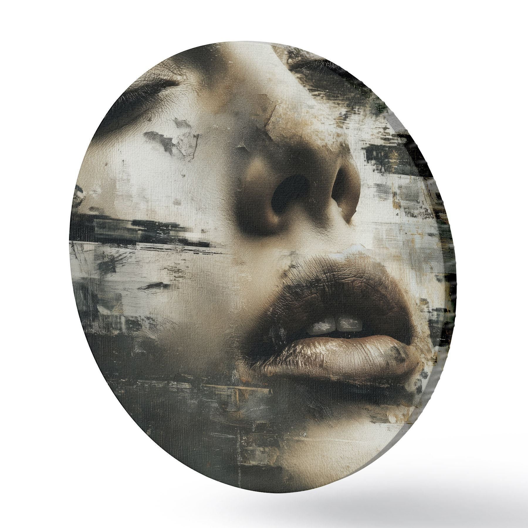 Apaļas gleznas Abstrakts sievietes portrets ar glitch efektu un tekstūrām r45873