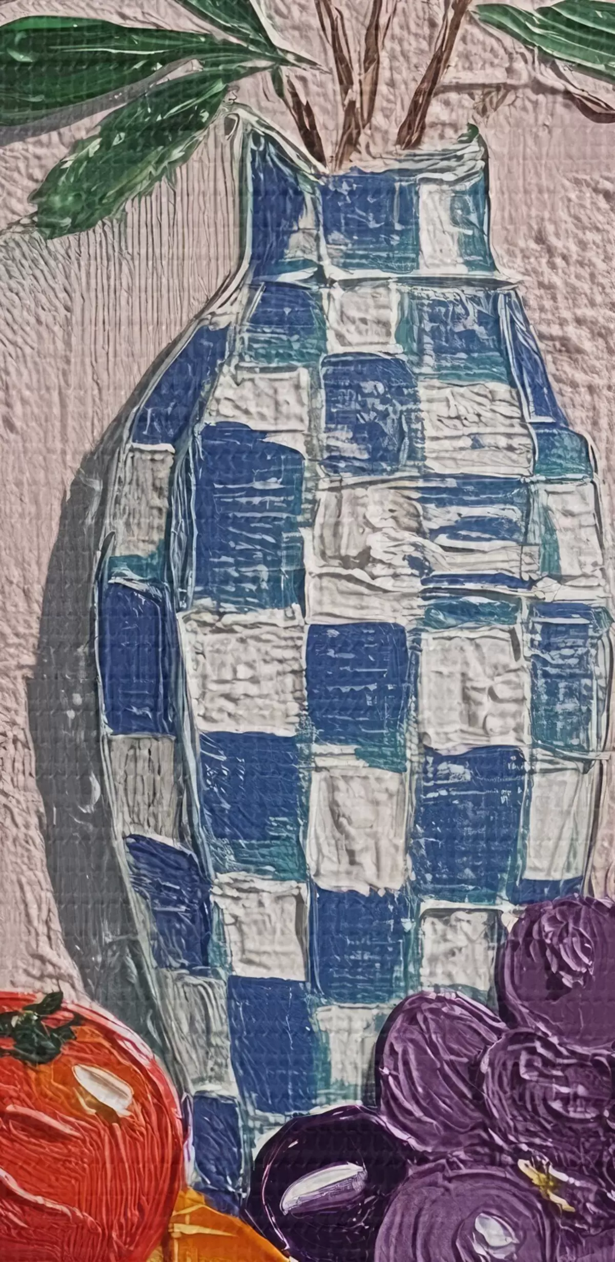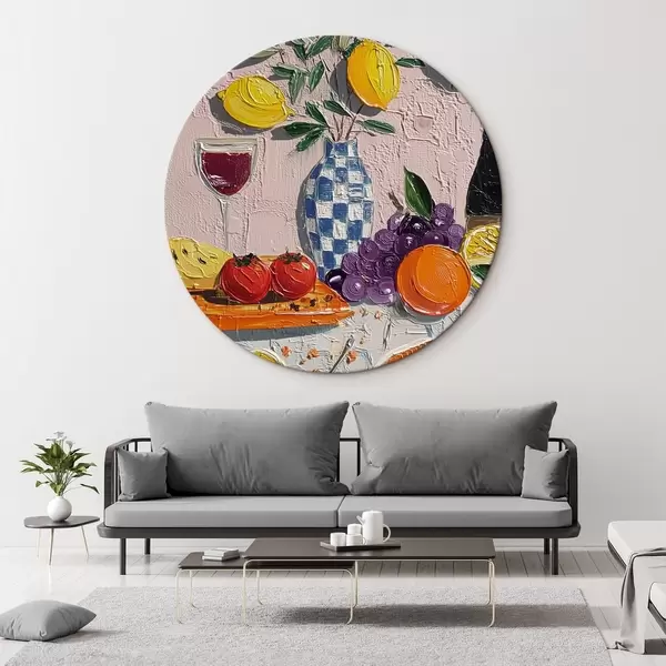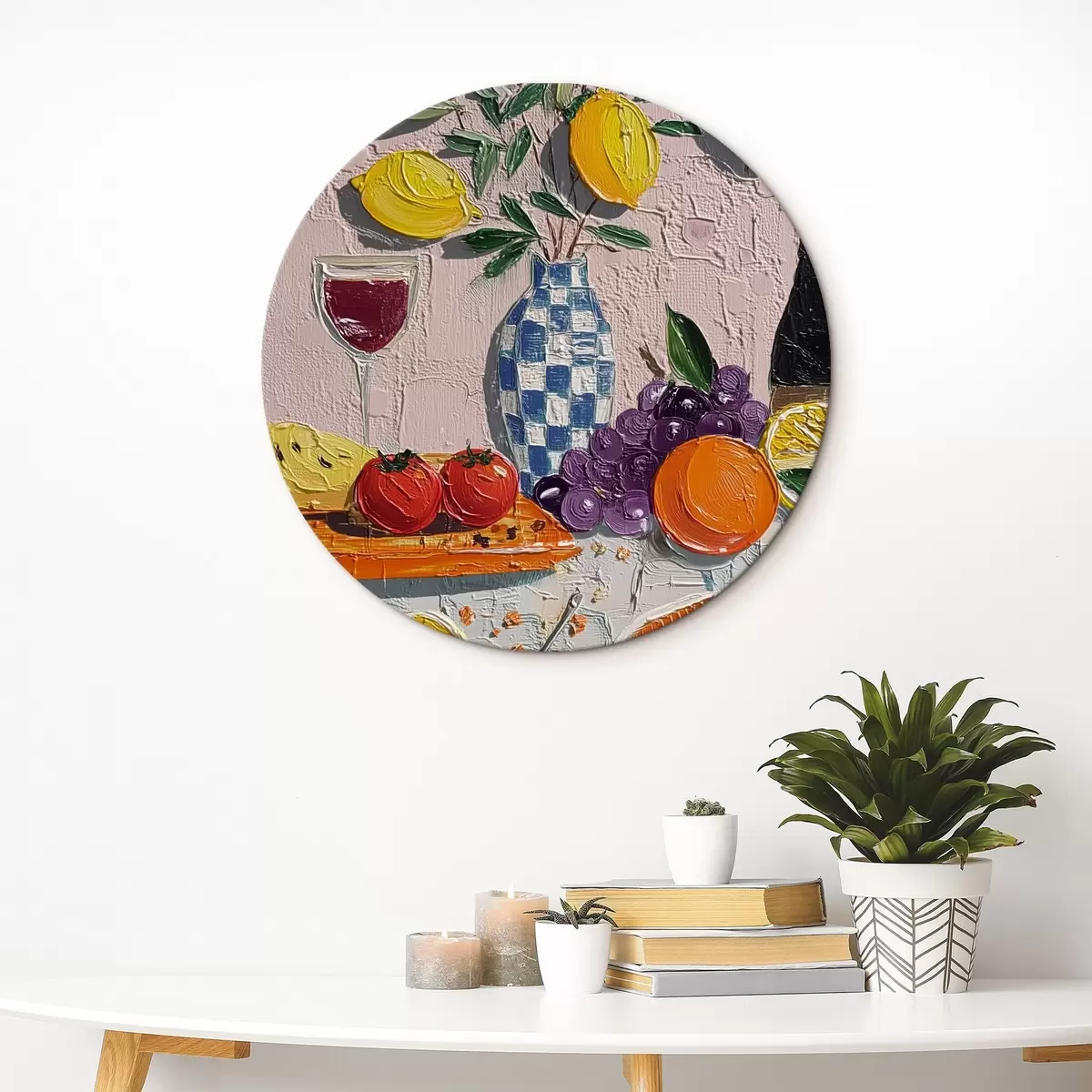 Apaļas gleznas Pastelis klusā daba: citroni, vīnogas un tomāti, impasto r45876