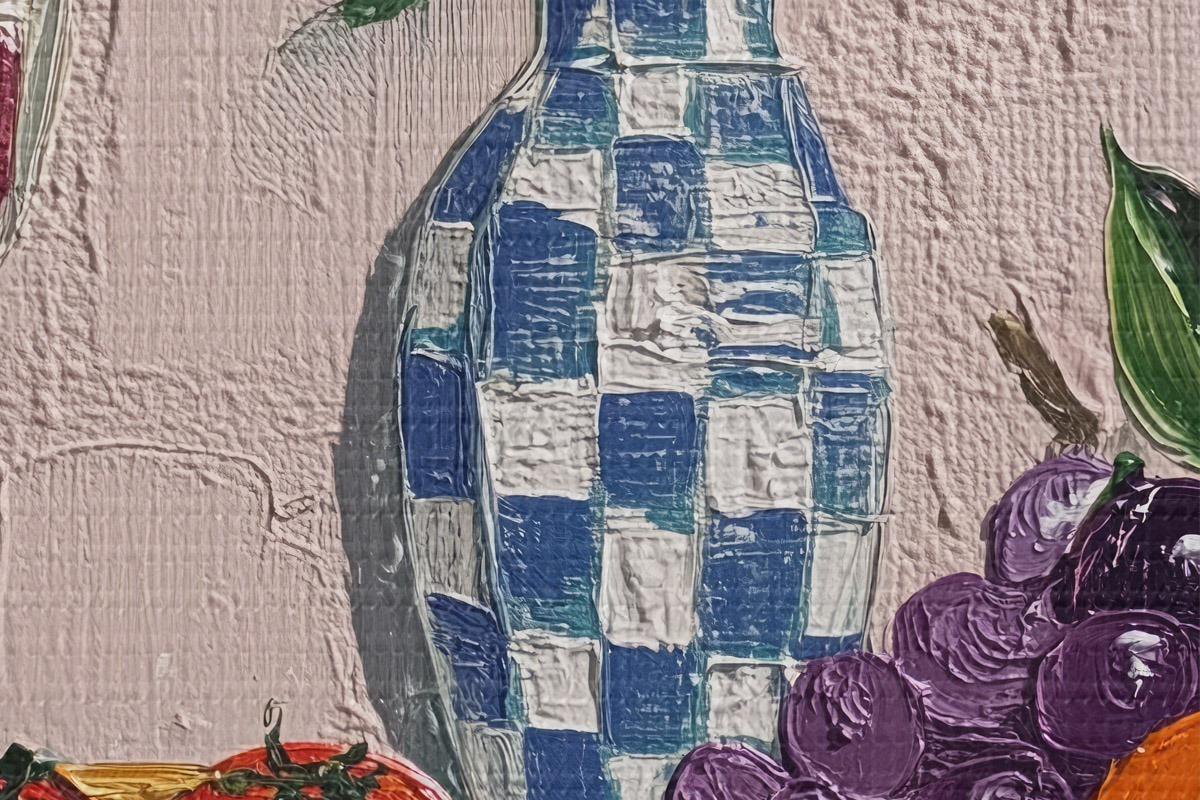 Attēls Pastelis klusā daba: citroni, vīnogas un tomāti, impasto Nr r45876