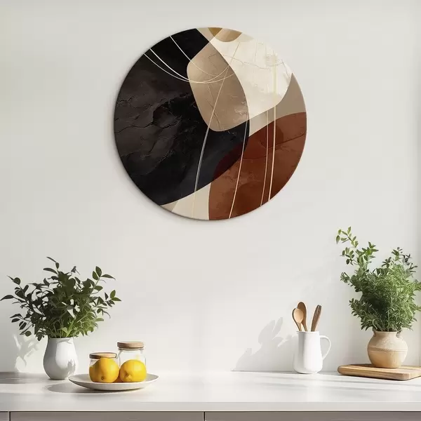 Apaļas gleznas Ģeometriskas formas siltā krāsu gamā, smalkas līnijas r45879