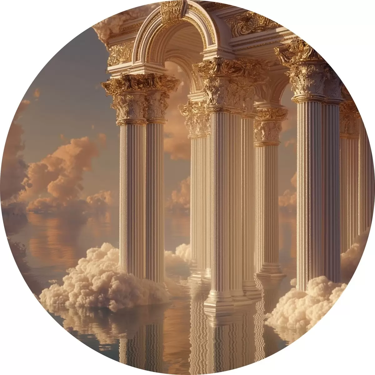 Apaļas gleznas Kolonnas mākoņos, atspoguļojumi uz ūdens r45881