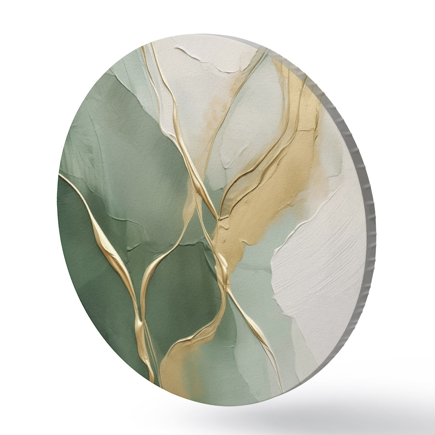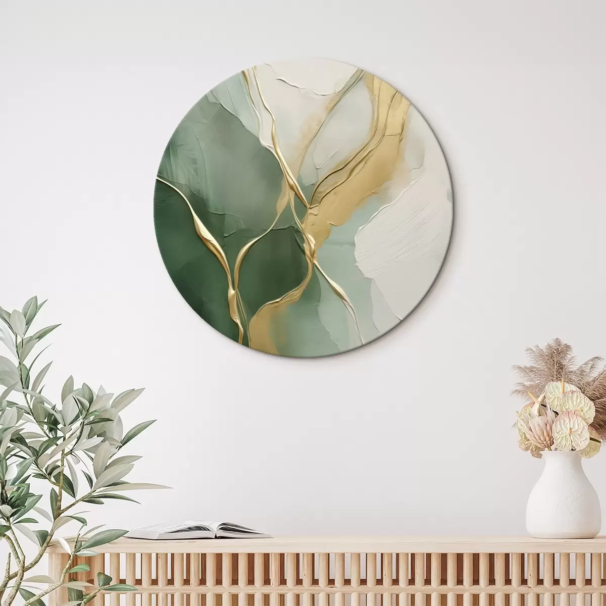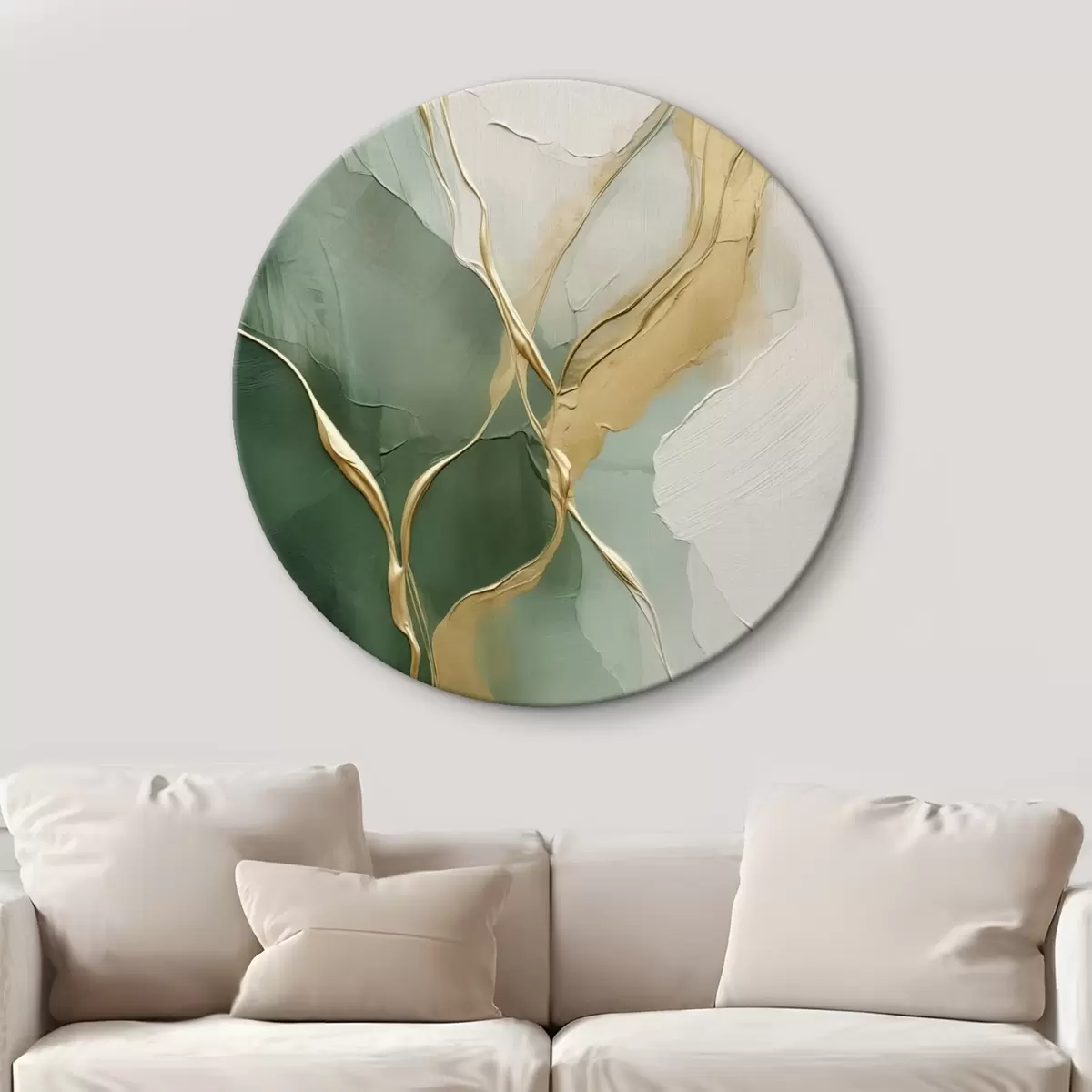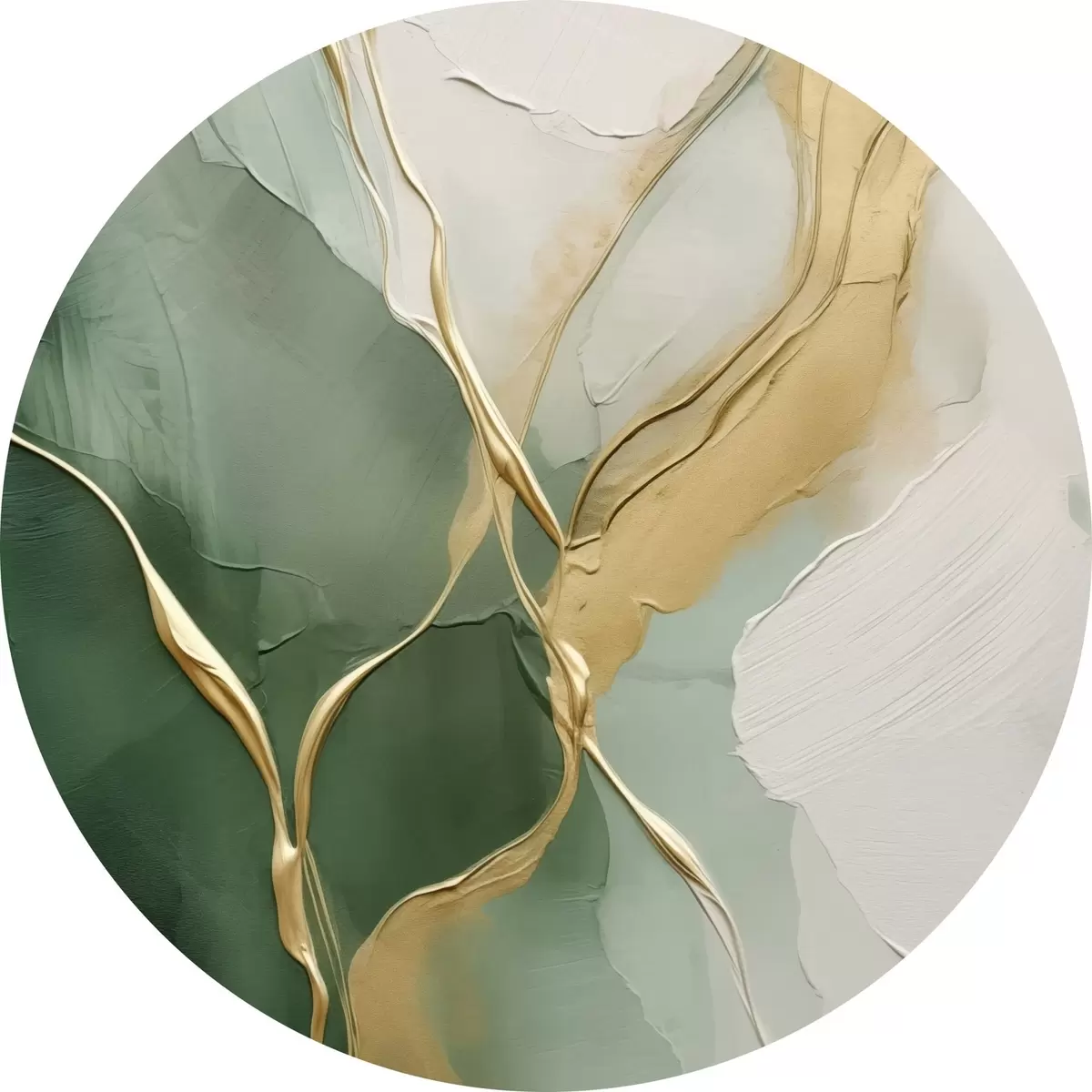 Apaļas gleznas Smaragda krāsas krēma abstrakcija ar dzeltenām straumītēm r45887