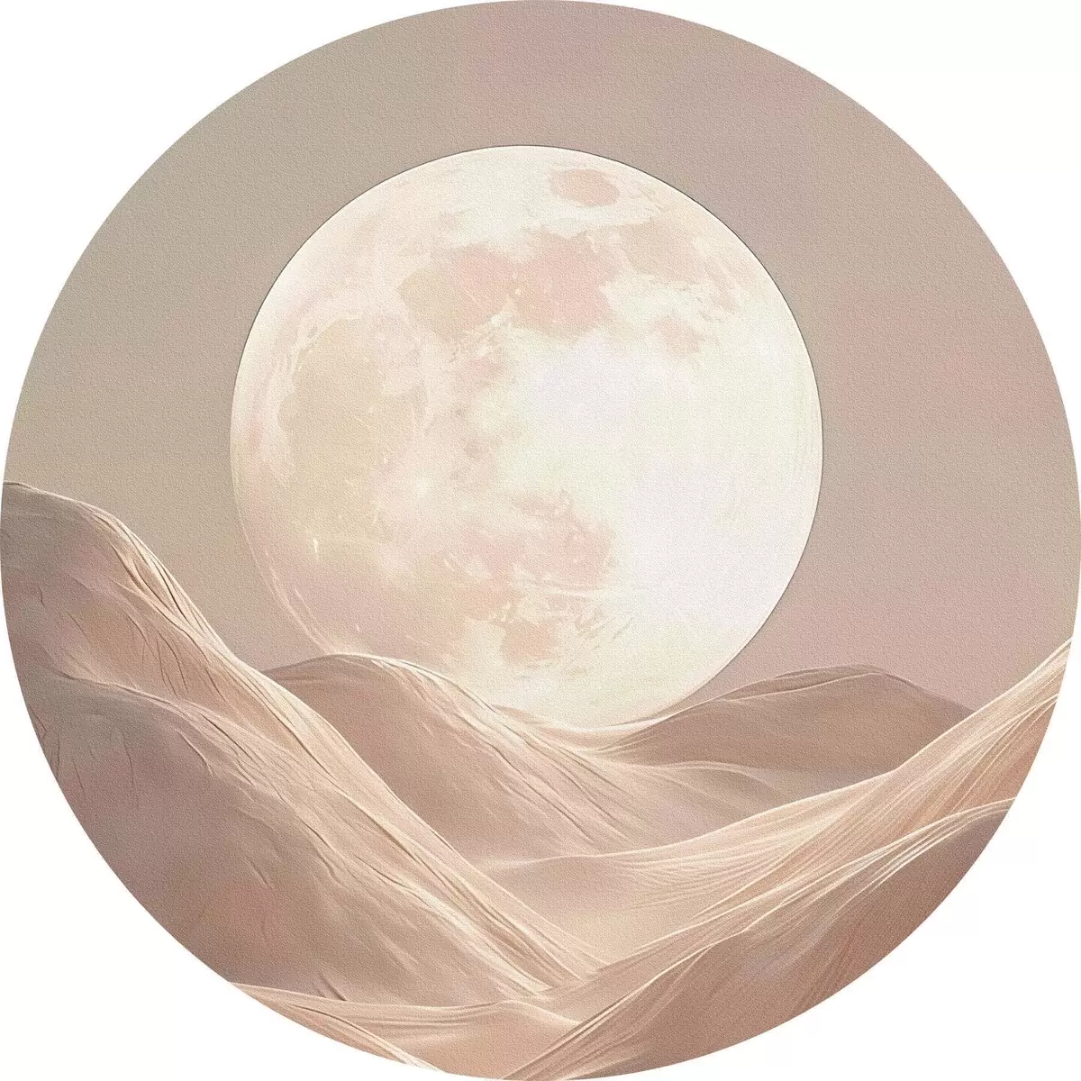 Apaļas gleznas Mēness virs smilšainām kāpām rozā toņos r45892
