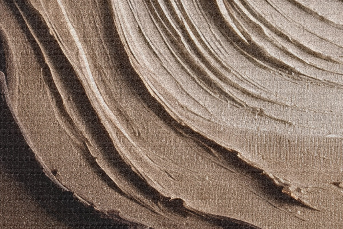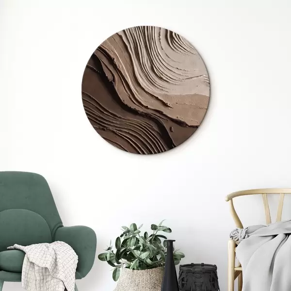 Apaļas gleznas Reljefas šokolādes-bēša krāsas slāņi, teksturēta pasta r45894