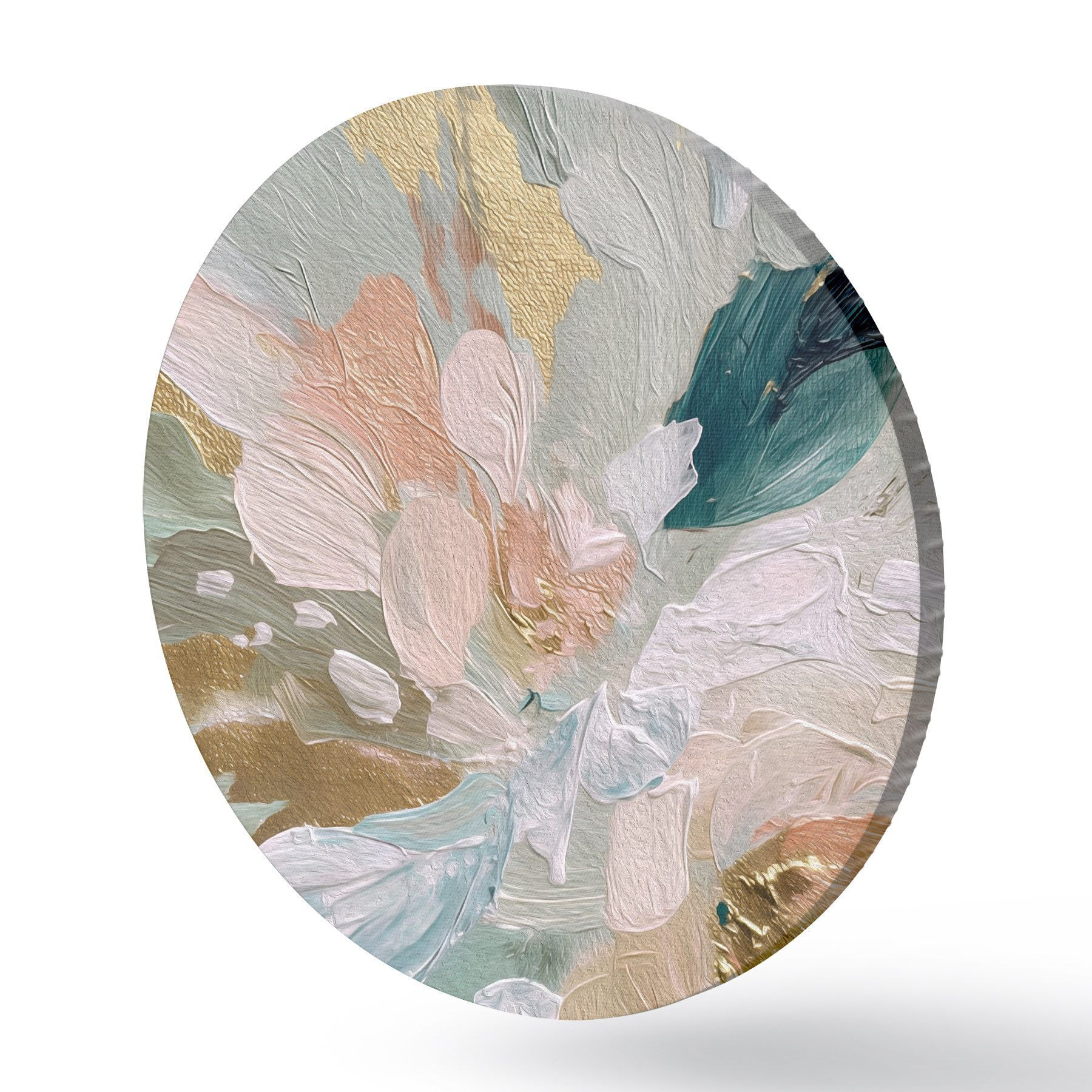 Apaļas gleznas Pastelkrāsas ziedu triepieni ar dzelteniem plankumiem r45899