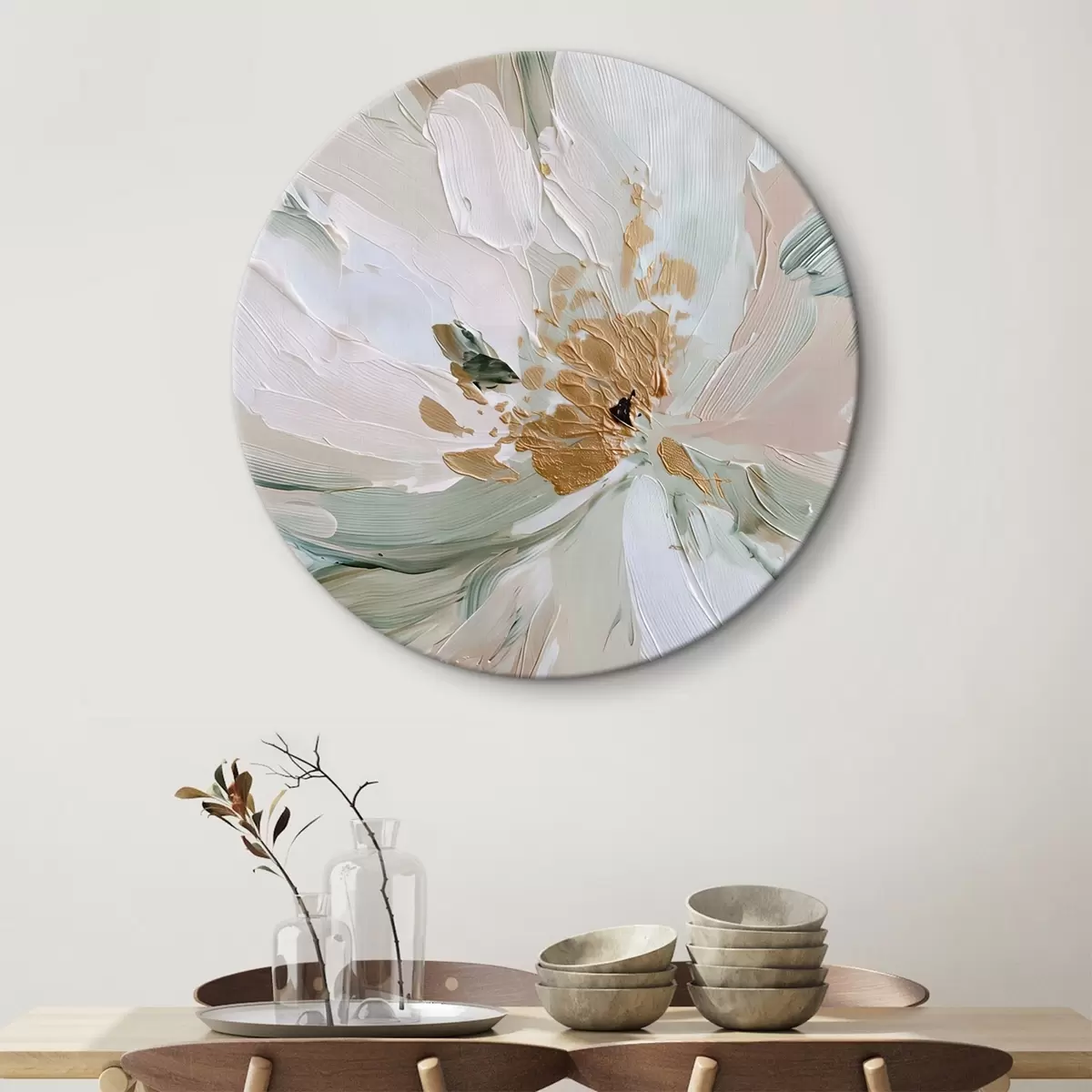 Apaļas gleznas Pastelkrāsas impasto zieds ar dzelteniem akcentiem r45900
