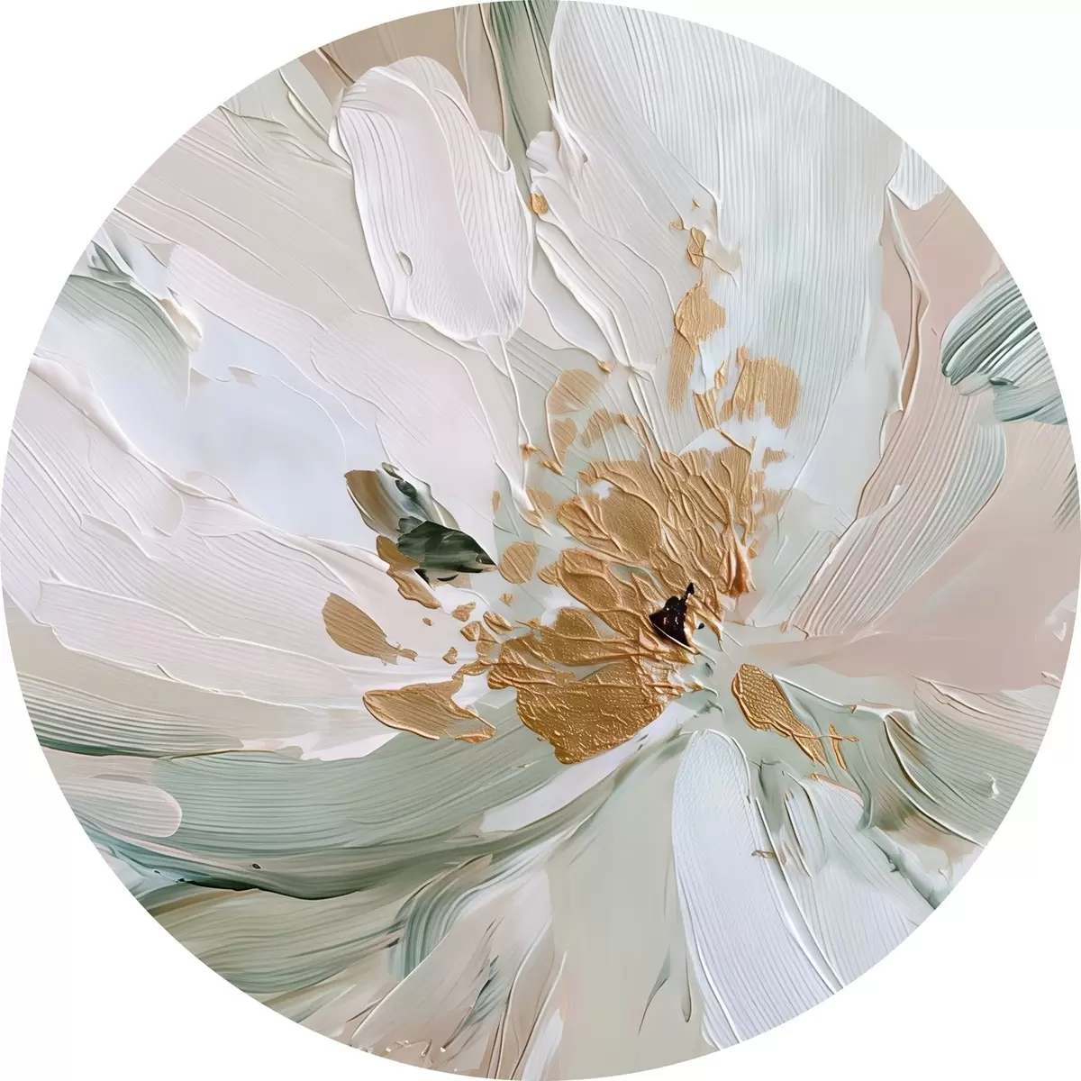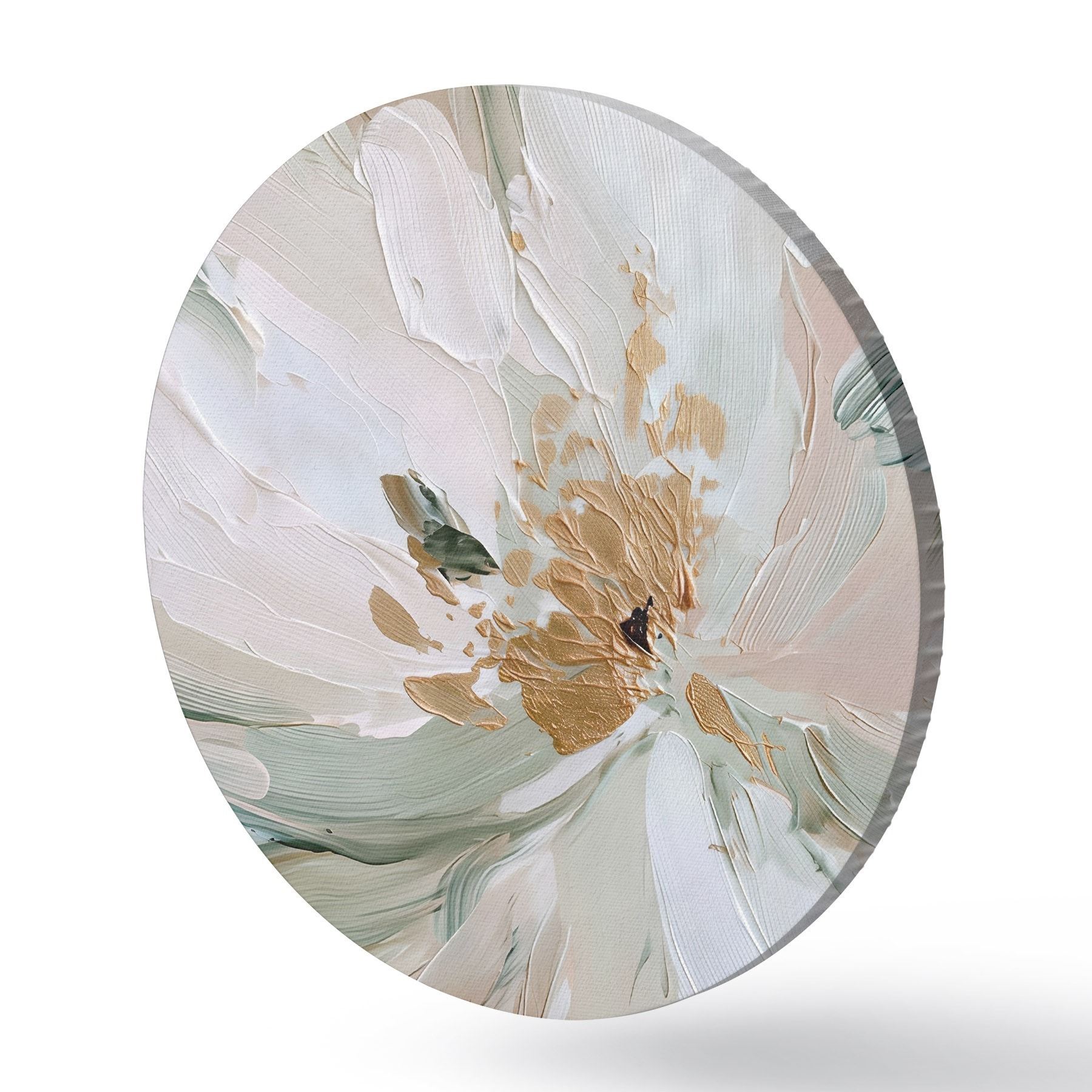 Apaļas gleznas Pastelkrāsas impasto zieds ar dzelteniem akcentiem r45900