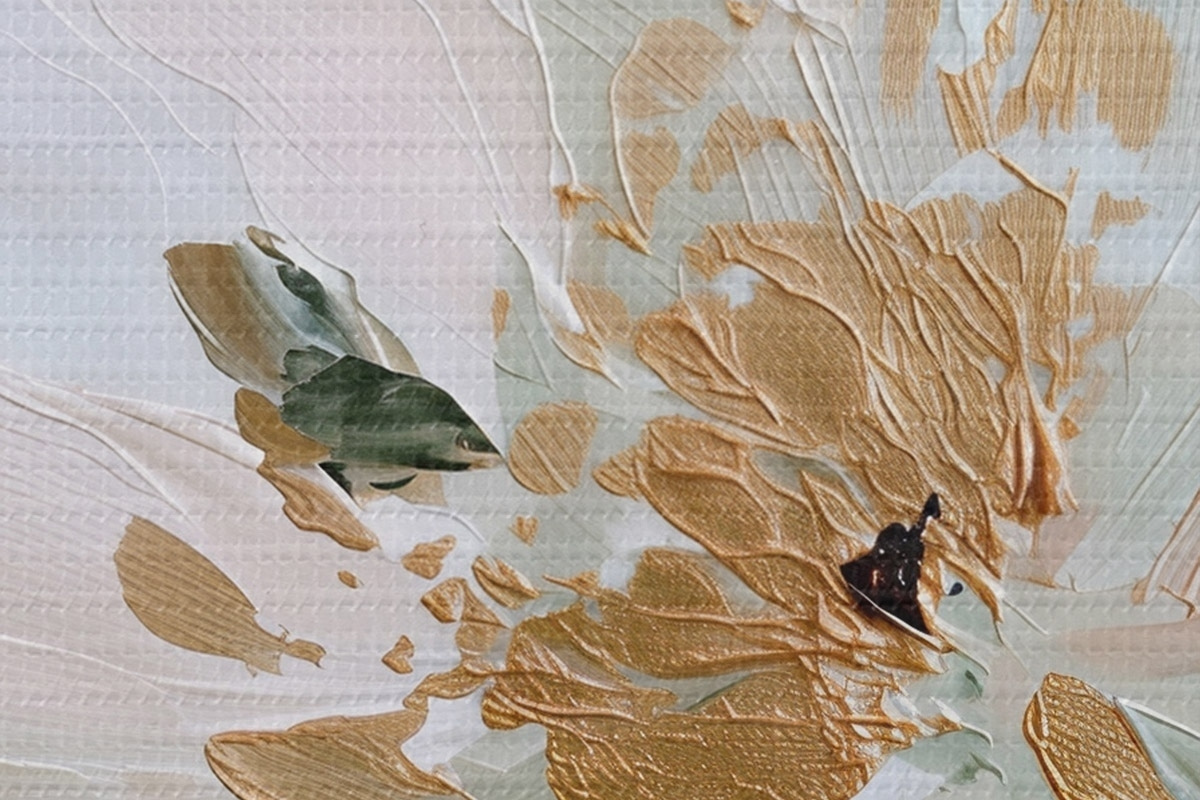 Attēls Pastelkrāsas impasto zieds ar dzelteniem akcentiem Nr r45900