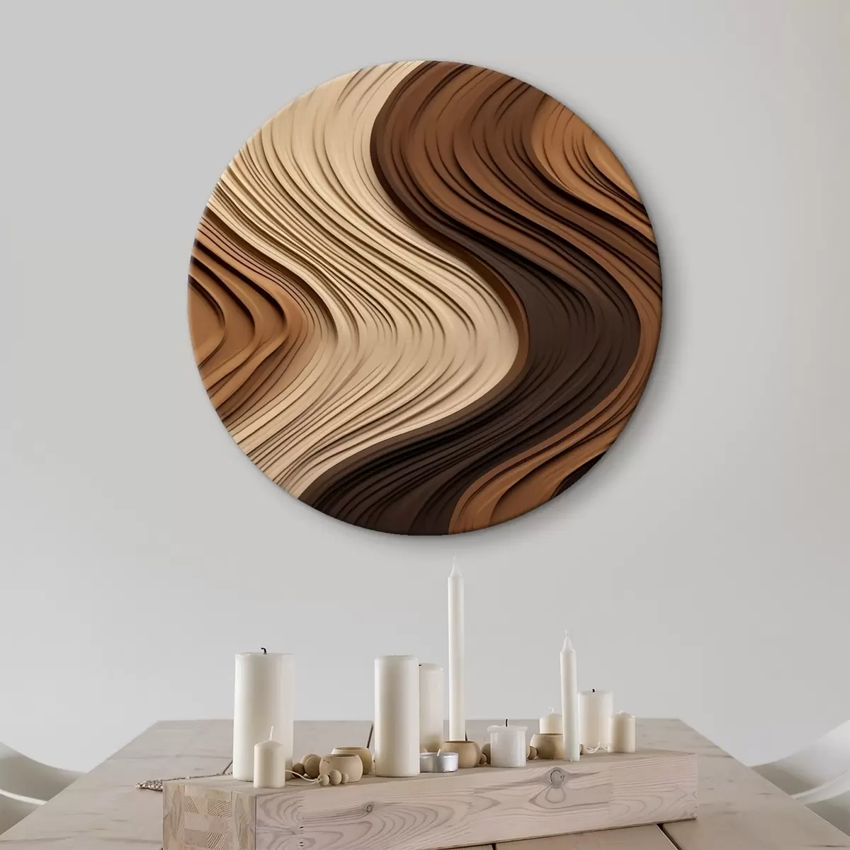 Apaļas gleznas Vertikālas viļņveida līnijas siltā smilškrāsā-brūnā tonī r45905