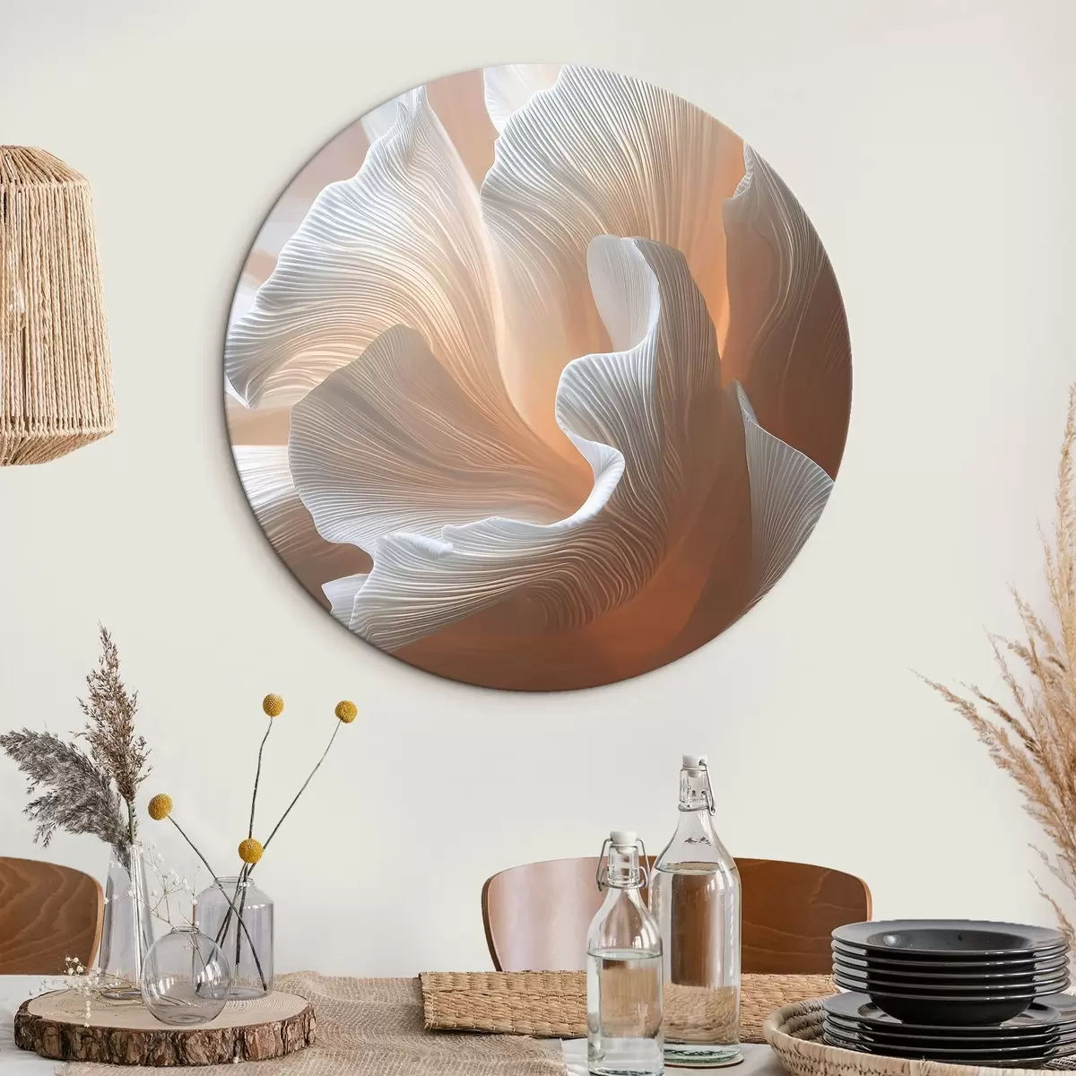 Apaļas gleznas Gaisīgi balti ziedlapiņas ar siltu persiku mirdzumu r45909