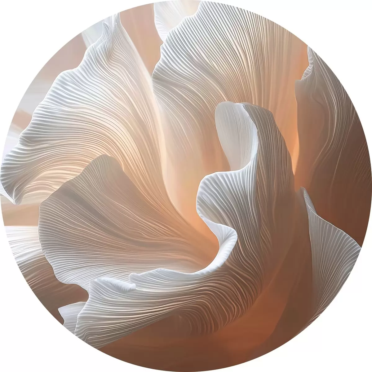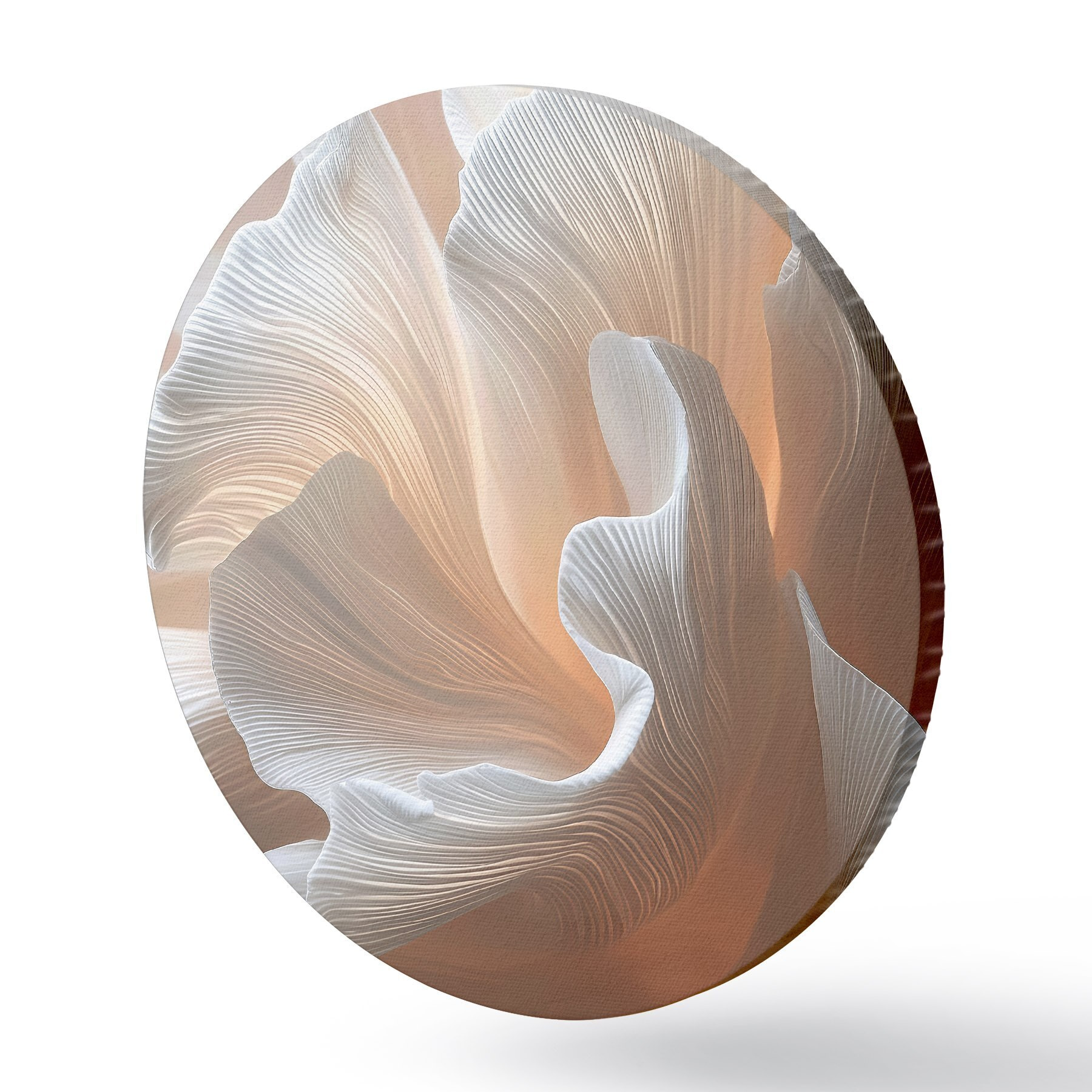 Apaļas gleznas Gaisīgi balti ziedlapiņas ar siltu persiku mirdzumu r45909