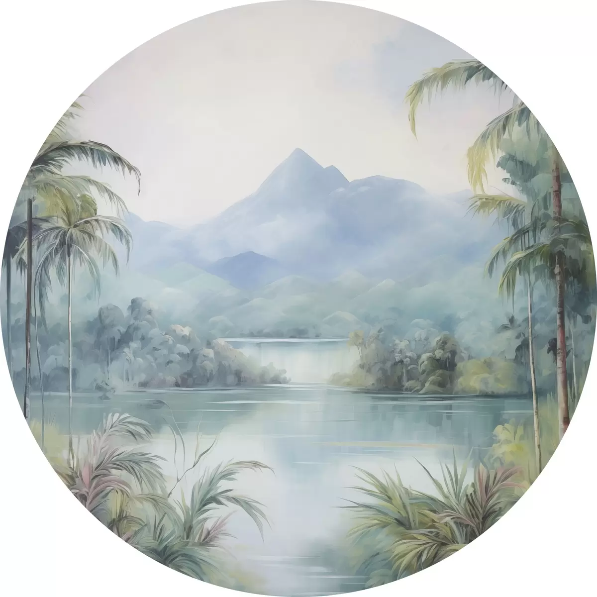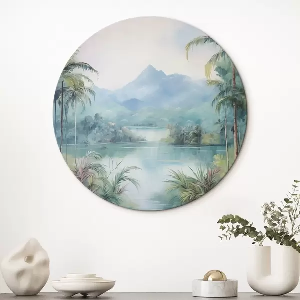 Apaļas gleznas Upe džungļos kalna priekšā r45912