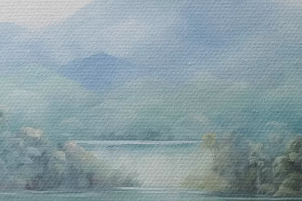 Smalkais diegu pinums uz šī audekla atgādina profesionālu mākslinieku audeklu virsmu.