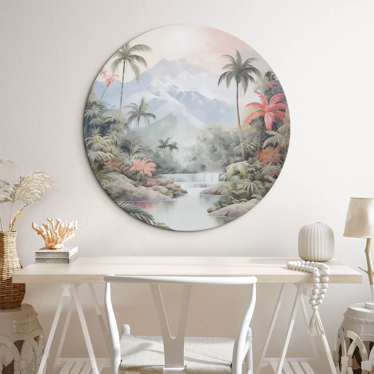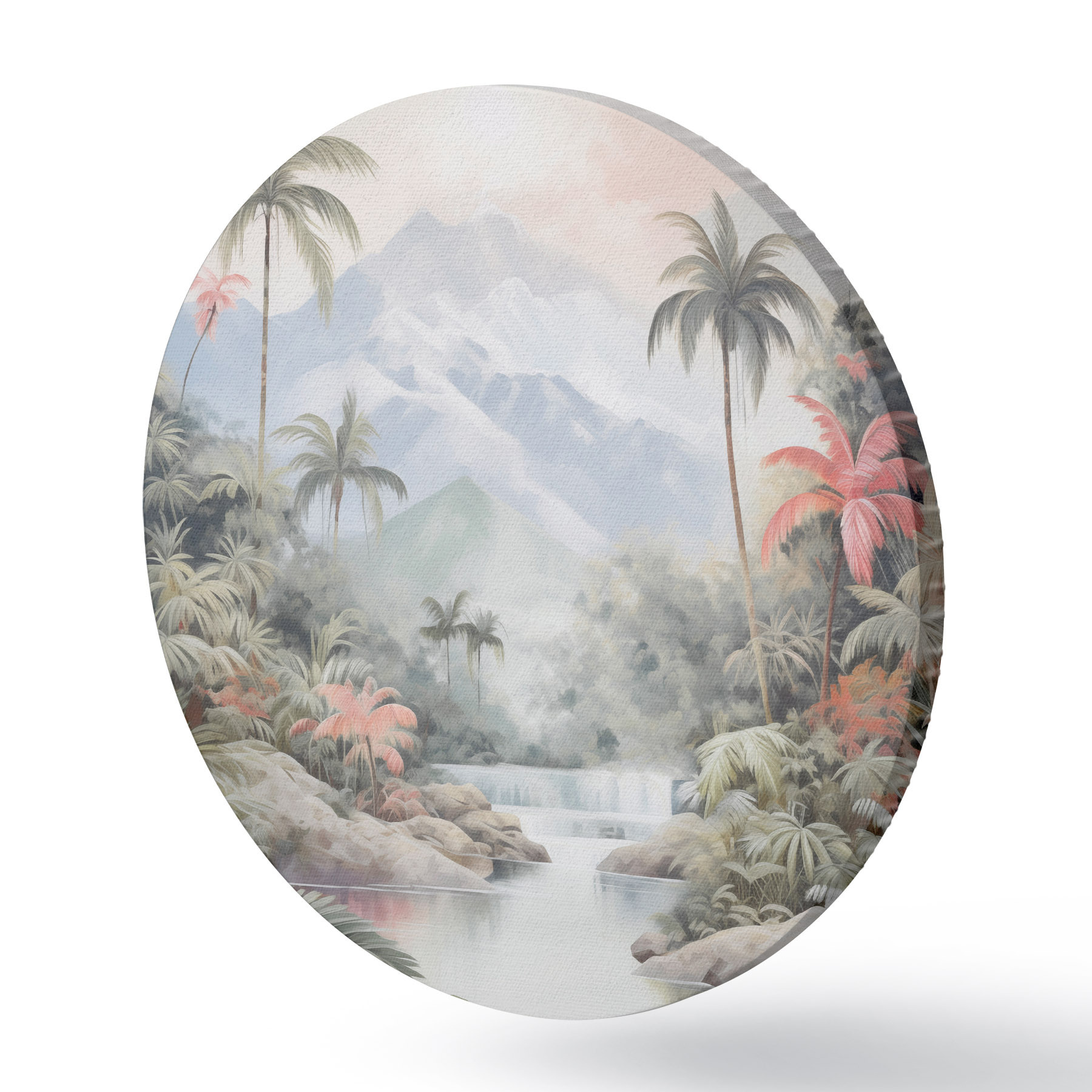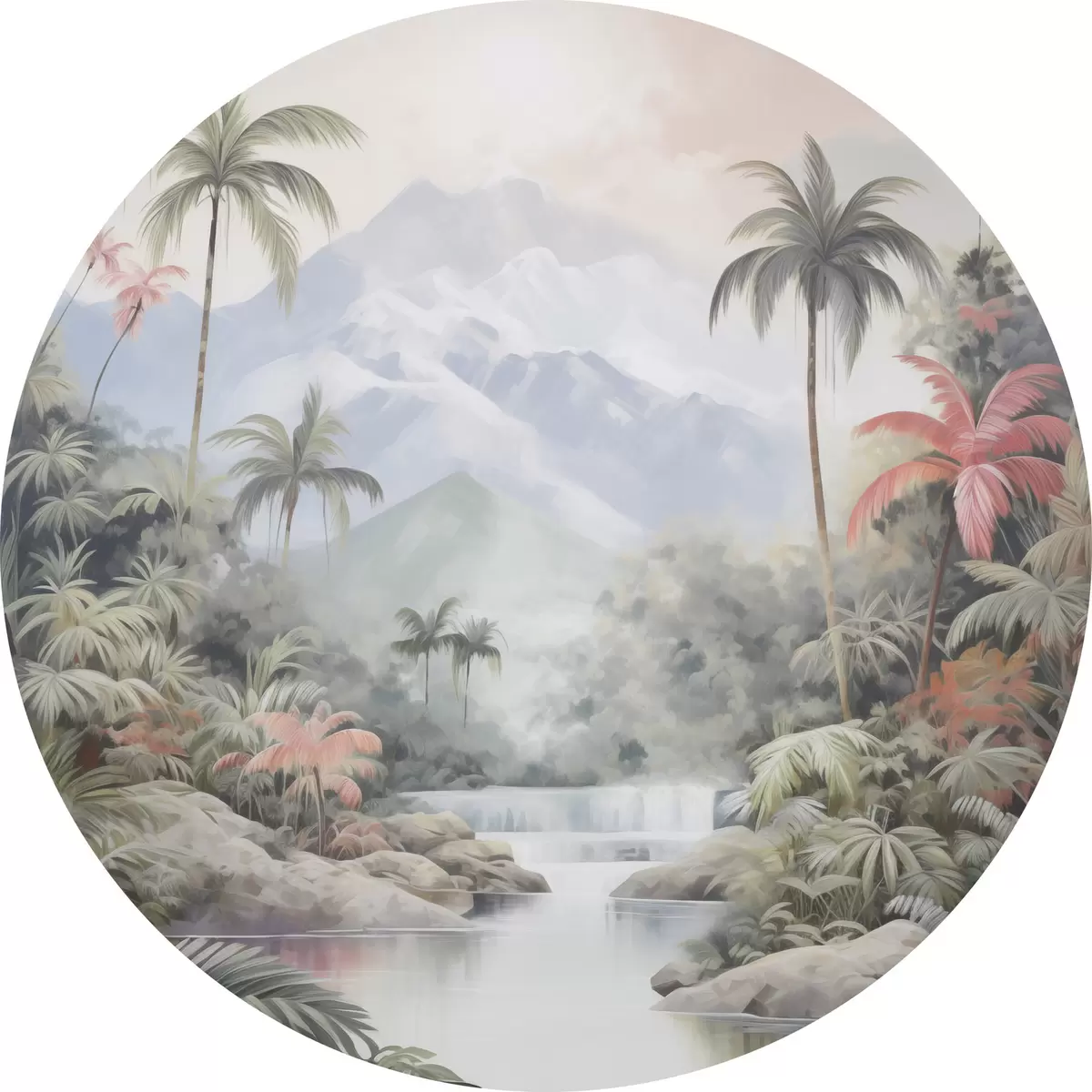 Apaļas gleznas Upe tropu mežā kalnu priekšā r45913