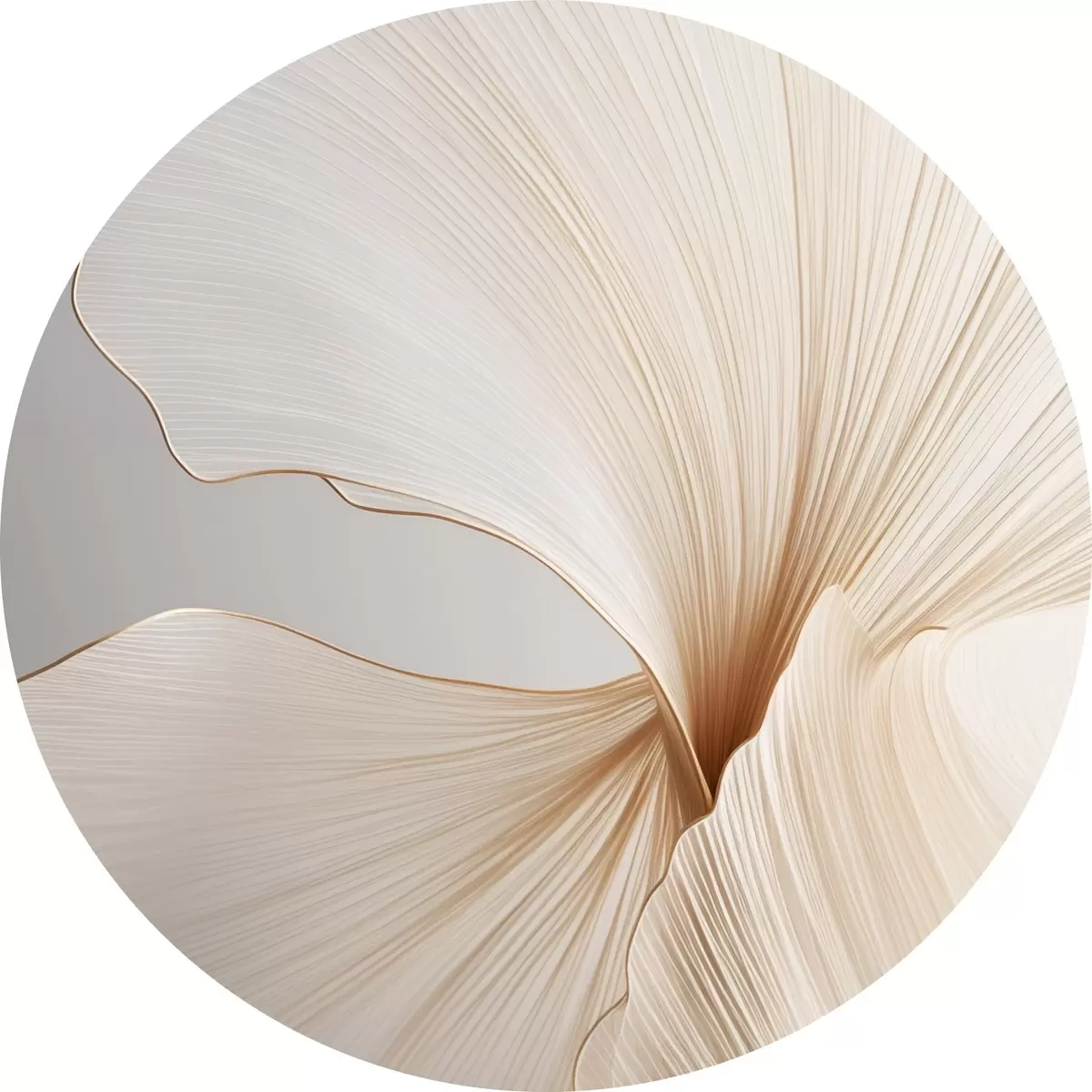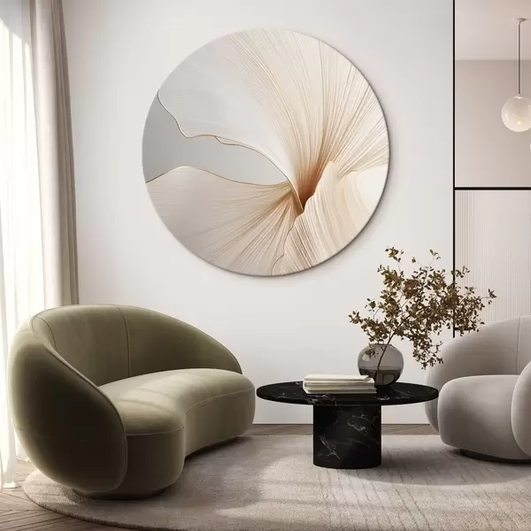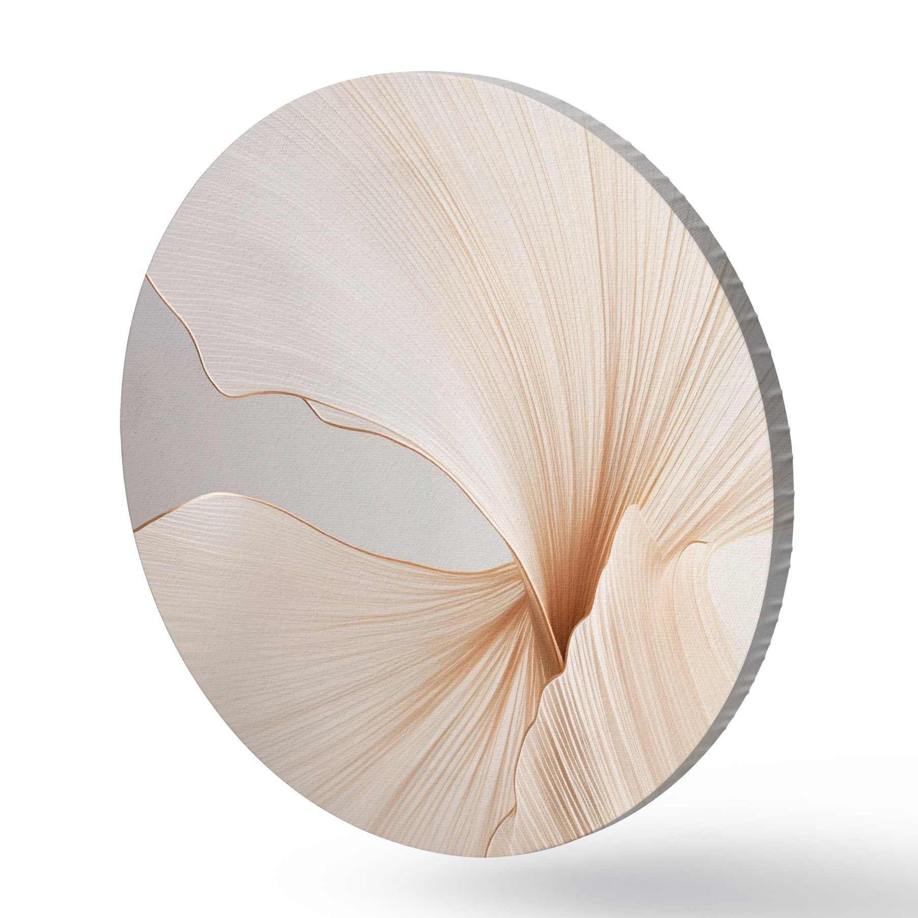 Apaļas gleznas Abstraktas ziedi ar plāniem, delikātiem ziedlapiem baltā un smilškrāsā toņos r45923
