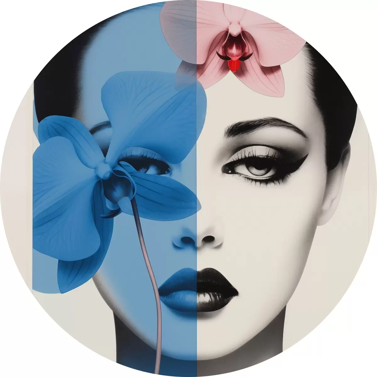 Attēls Abstrakts mākslas portrets sievietei ar orhidejām Nr r45924