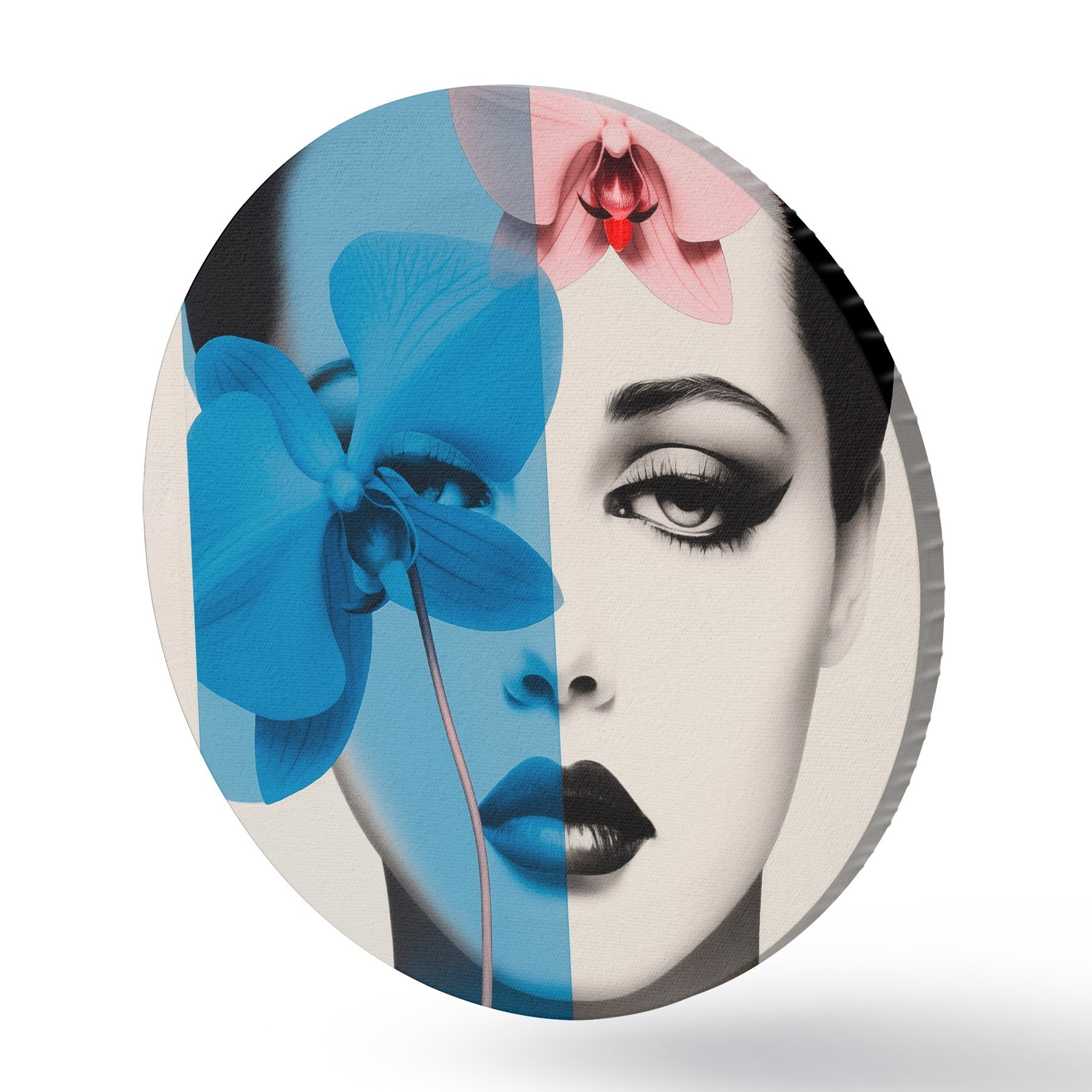 Apaļas gleznas Abstrakts mākslas portrets sievietei ar orhidejām r45924