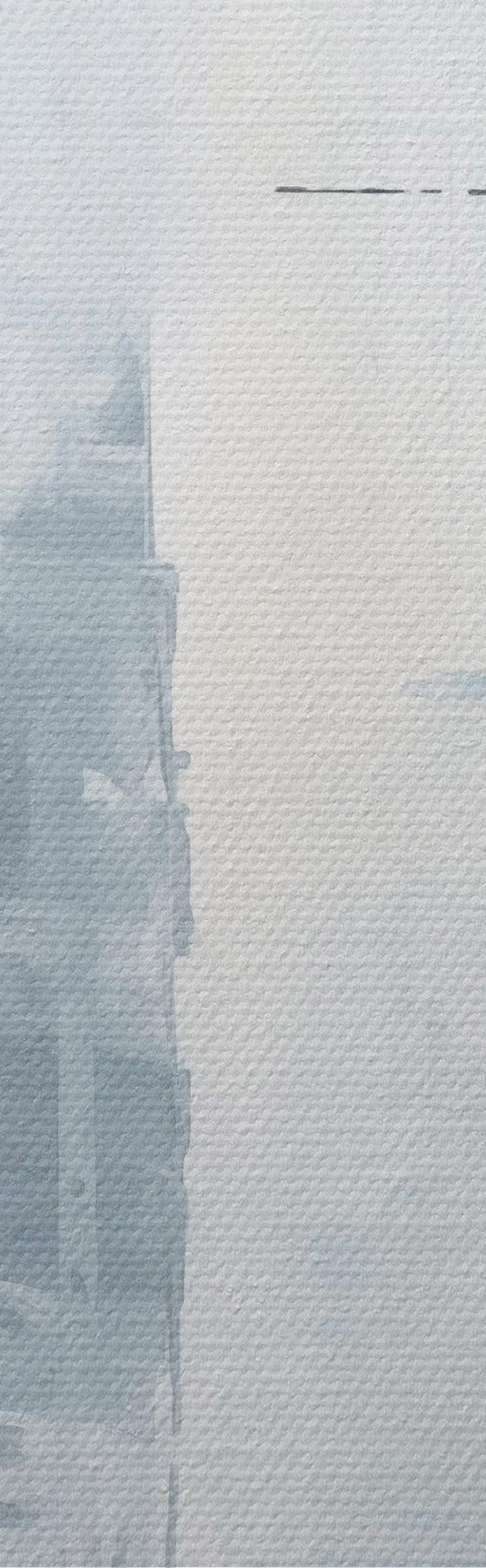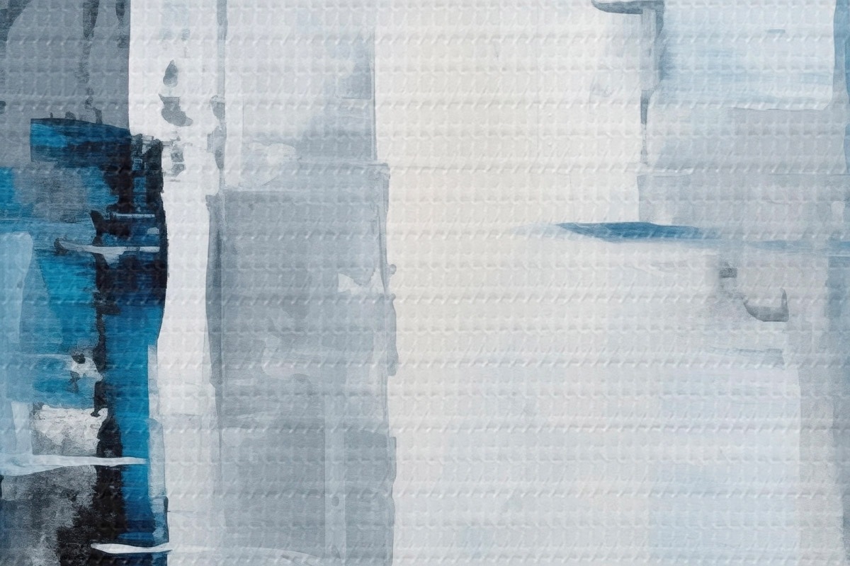 Attēls Abstrakta glezna, kurā izmantotas zilas, pelēkas un baltas krāsas, vertikālas līnijas un ģeometriskas formas Nr r45926