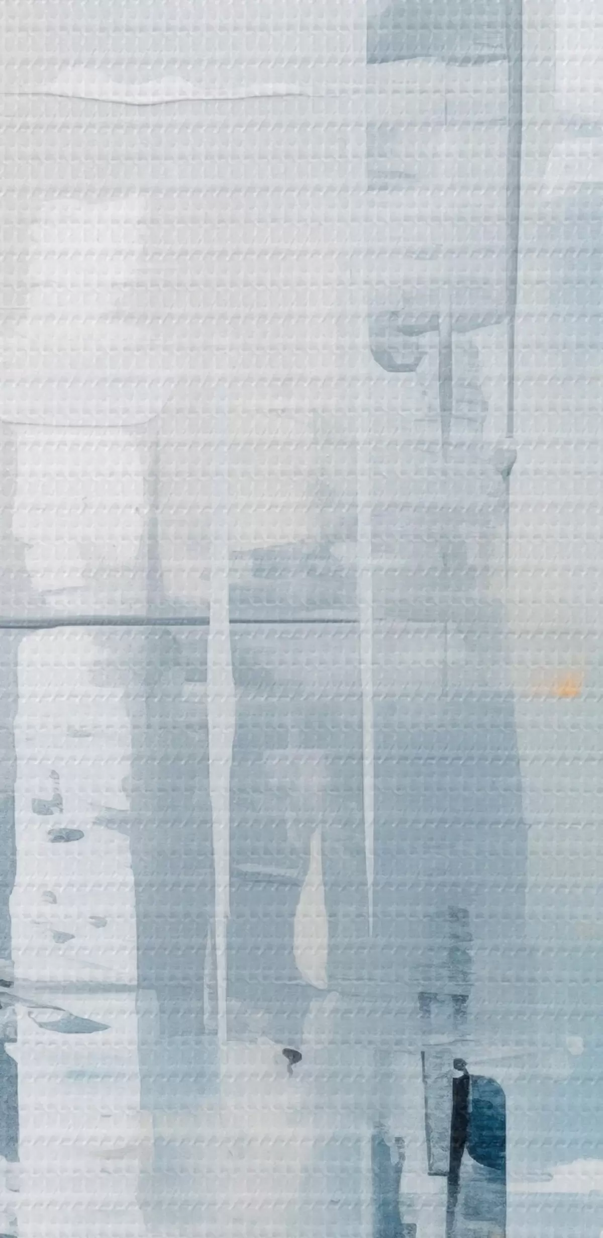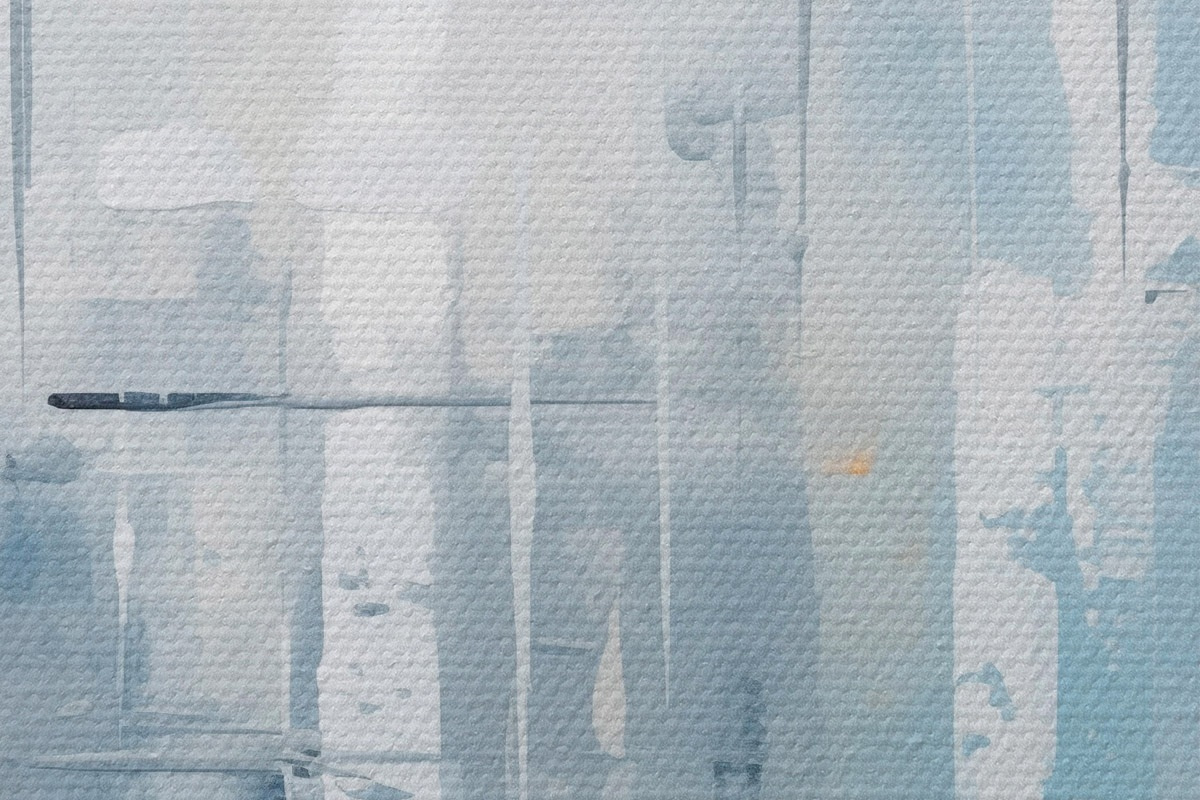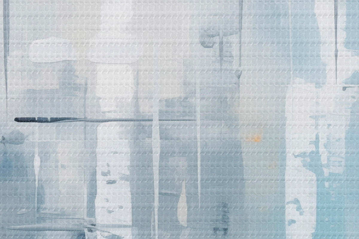 Attēls Abstrakta glezna, kurā izmantotas zilas, pelēkas un baltas krāsas, vertikālas līnijas un ģeometriskas formas Nr r45927