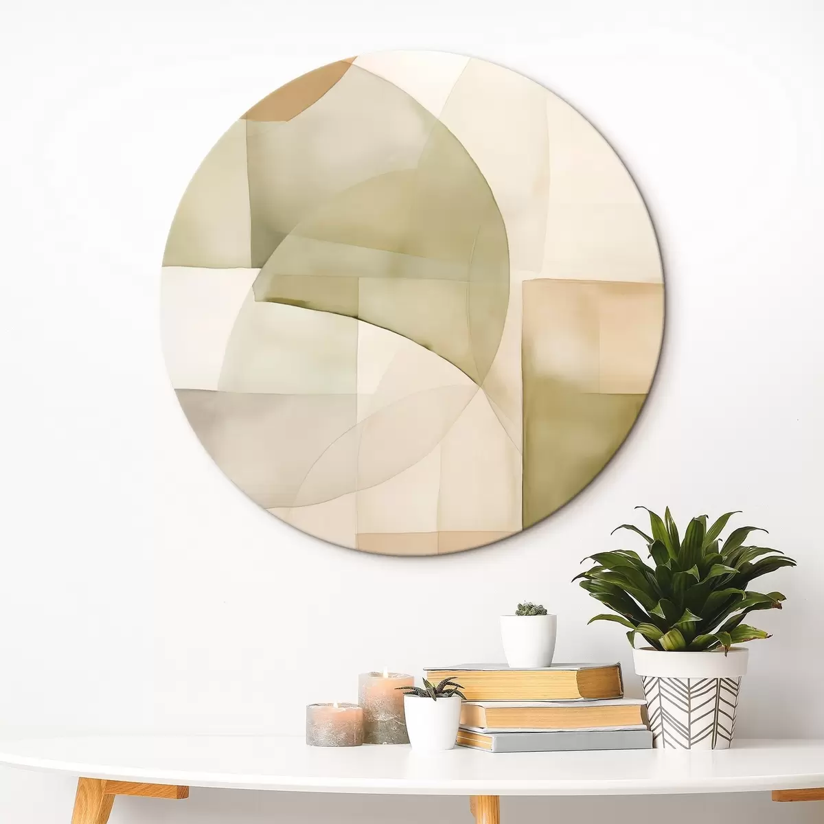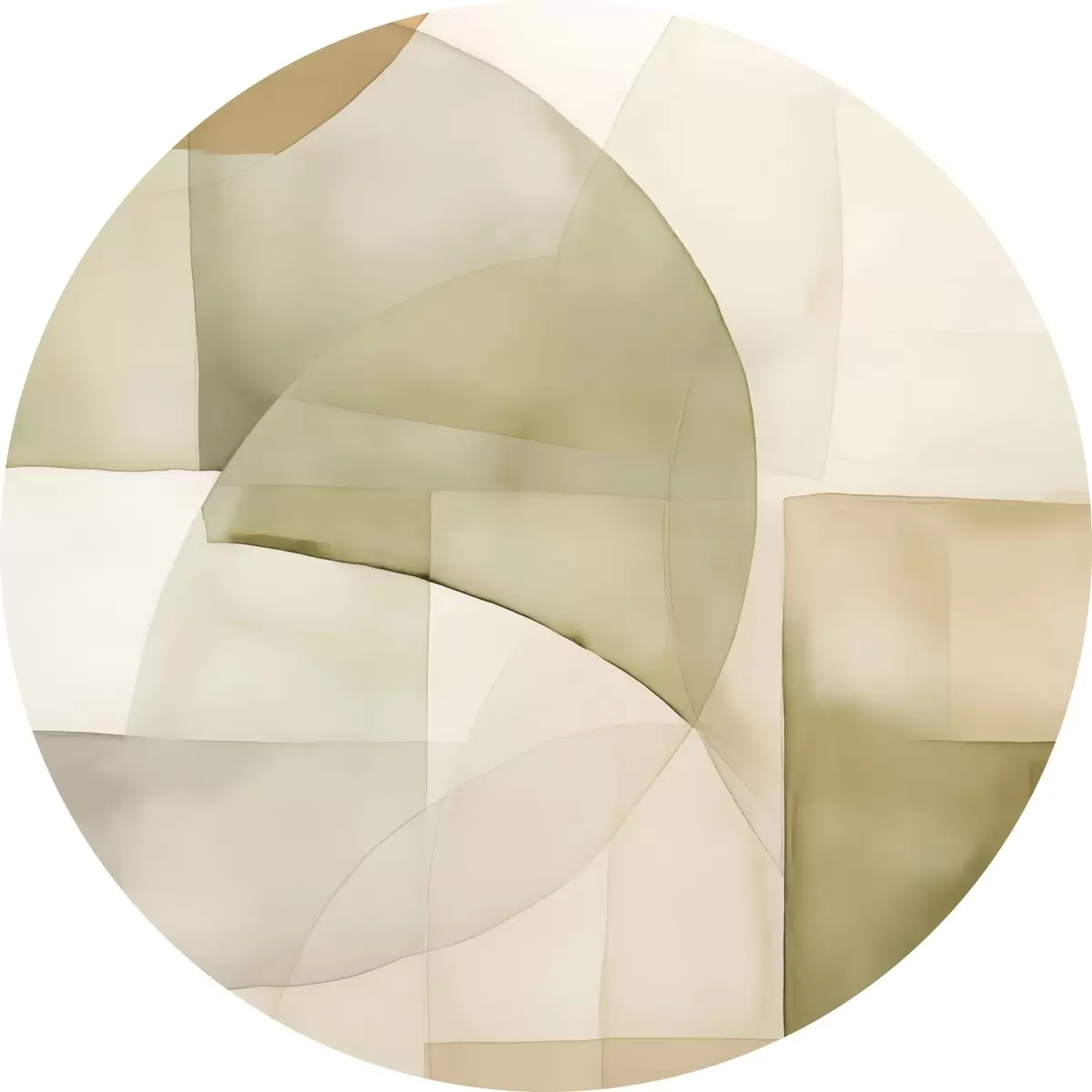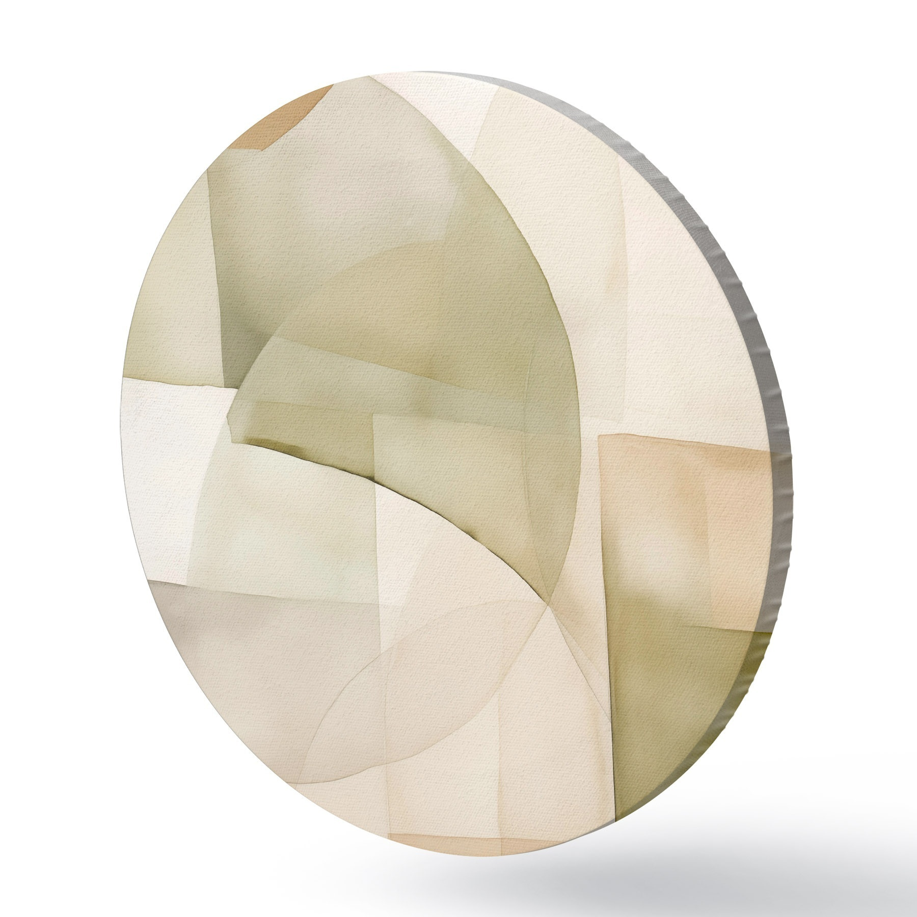 Apaļas gleznas Abstraktas akvareļa tekstūras ģeometriskas formas zaļā, brūnā un smilškrāsā r45929