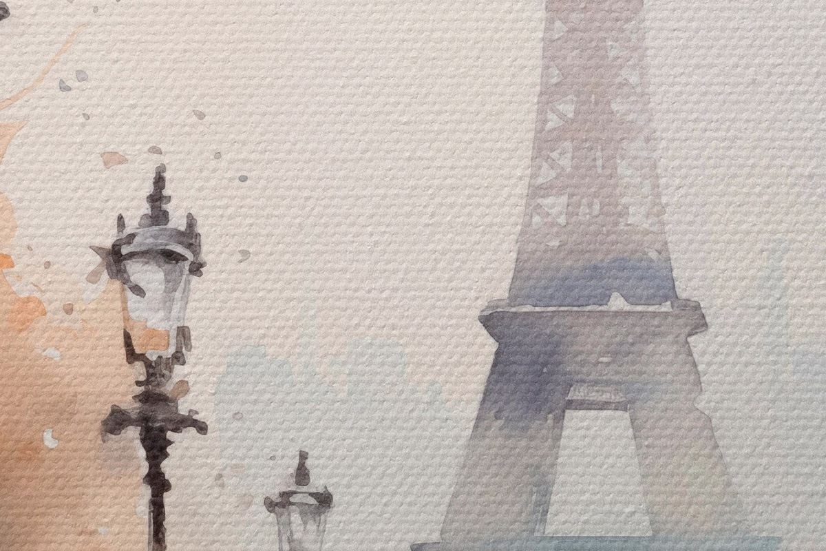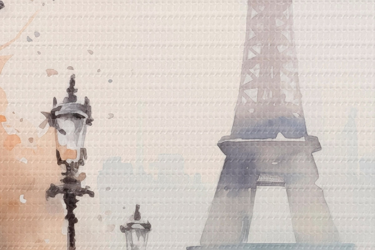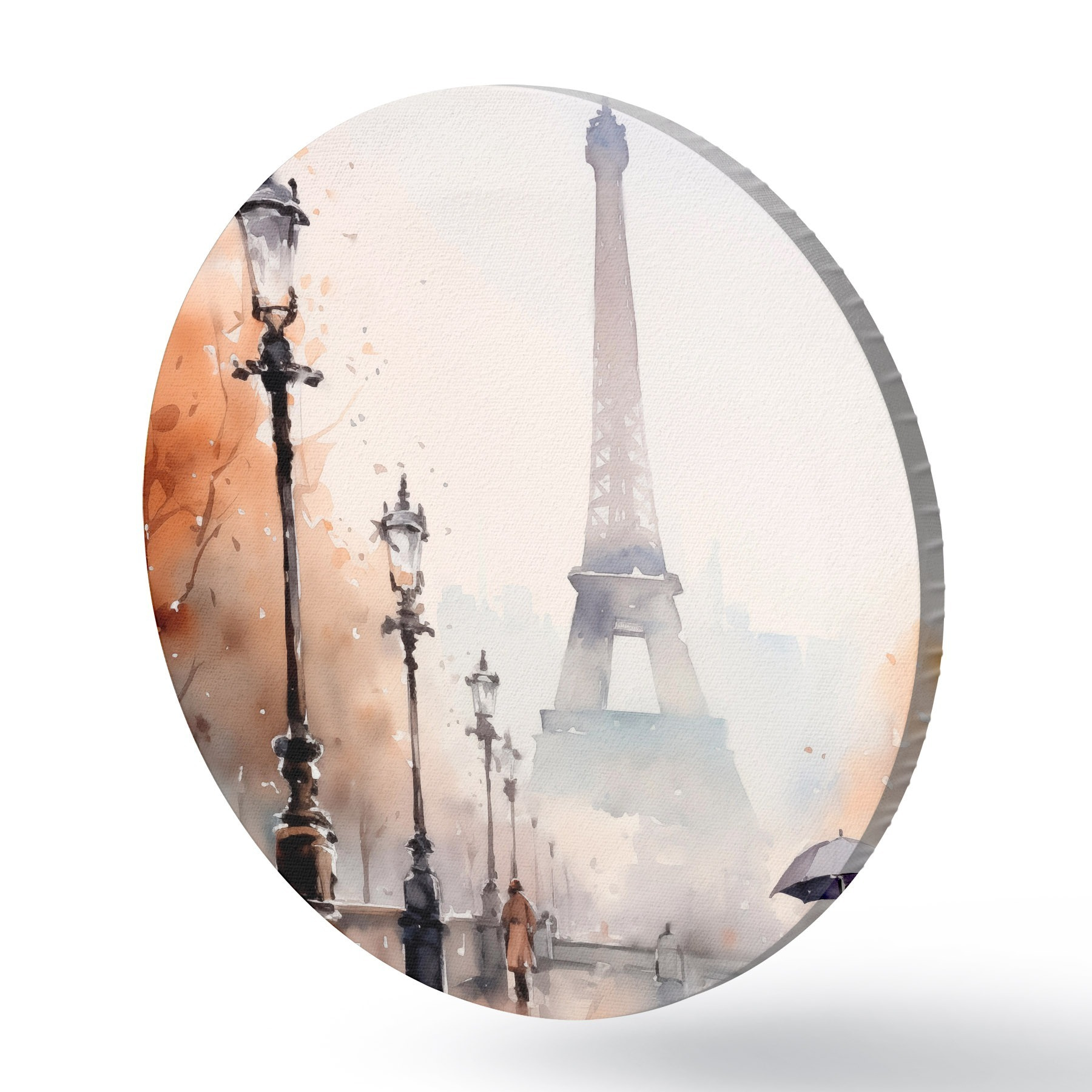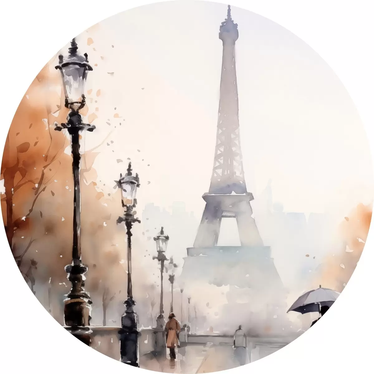 Apaļas gleznas Lietains diena Parīzē ar Eifeļa torni fonā un vintage ielu laternām r45930