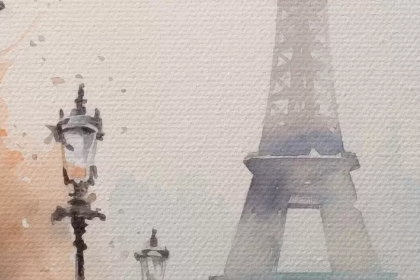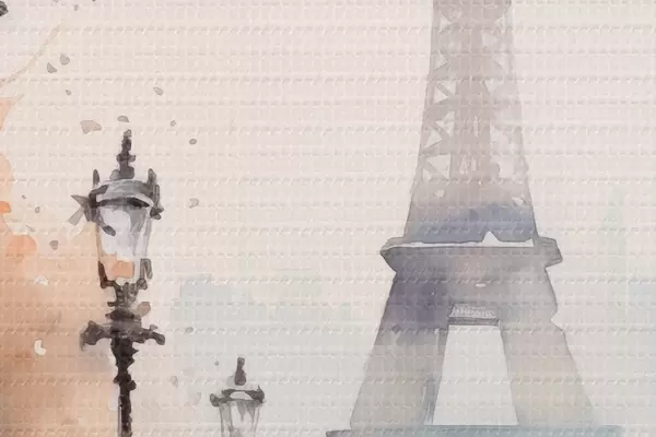 Attēls Lietains diena Parīzē ar Eifeļa torni fonā un vintage ielu laternām Nr r45930
