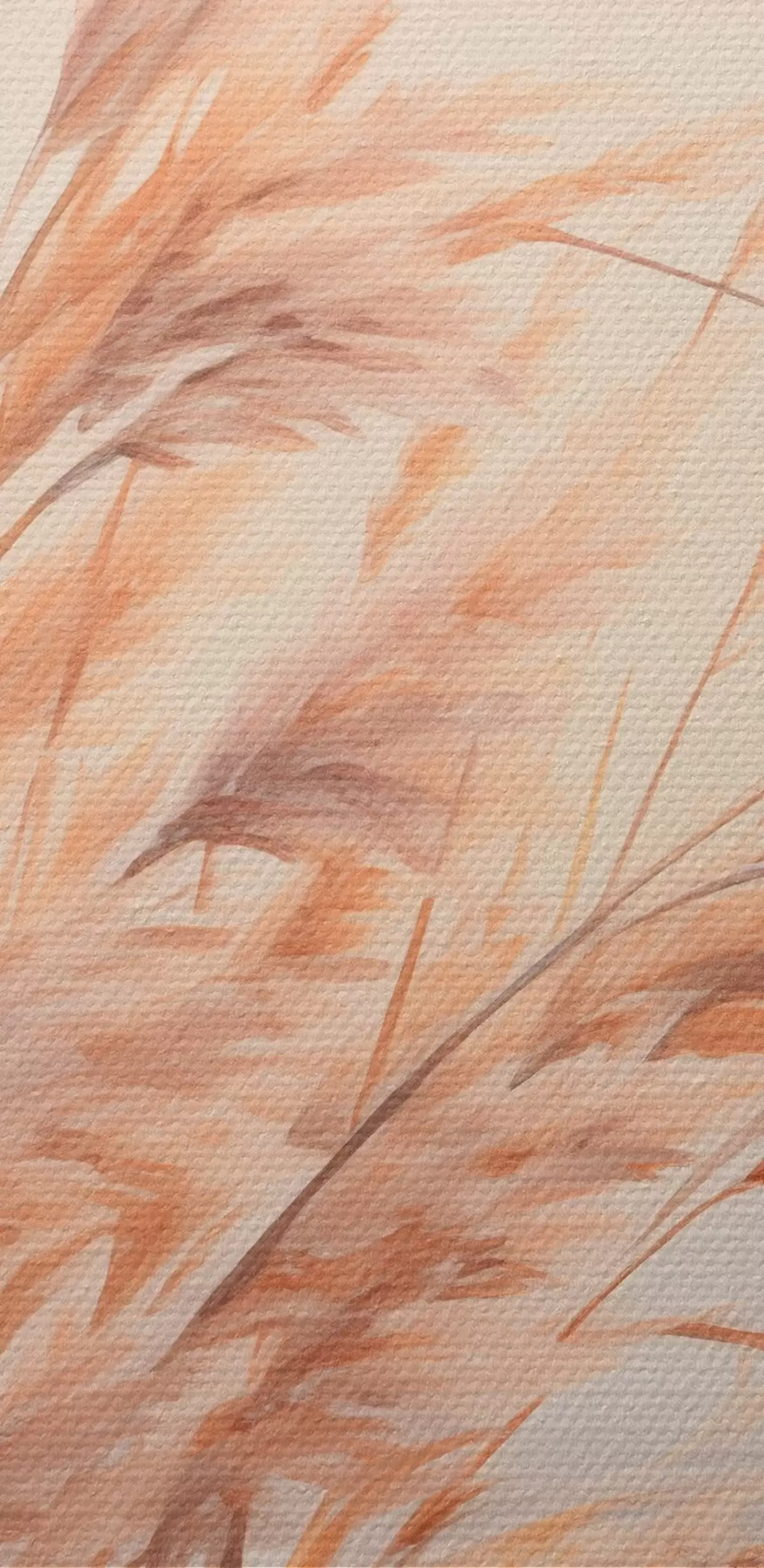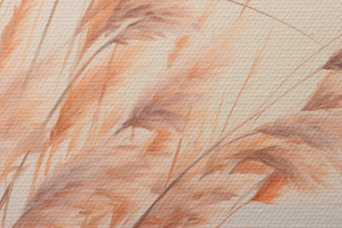 Attēls Pampas zāle ar pasteļoranžu krāsu paleti, gaiši rozā debesis, mierīgs ainava Nr r45934