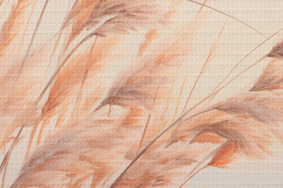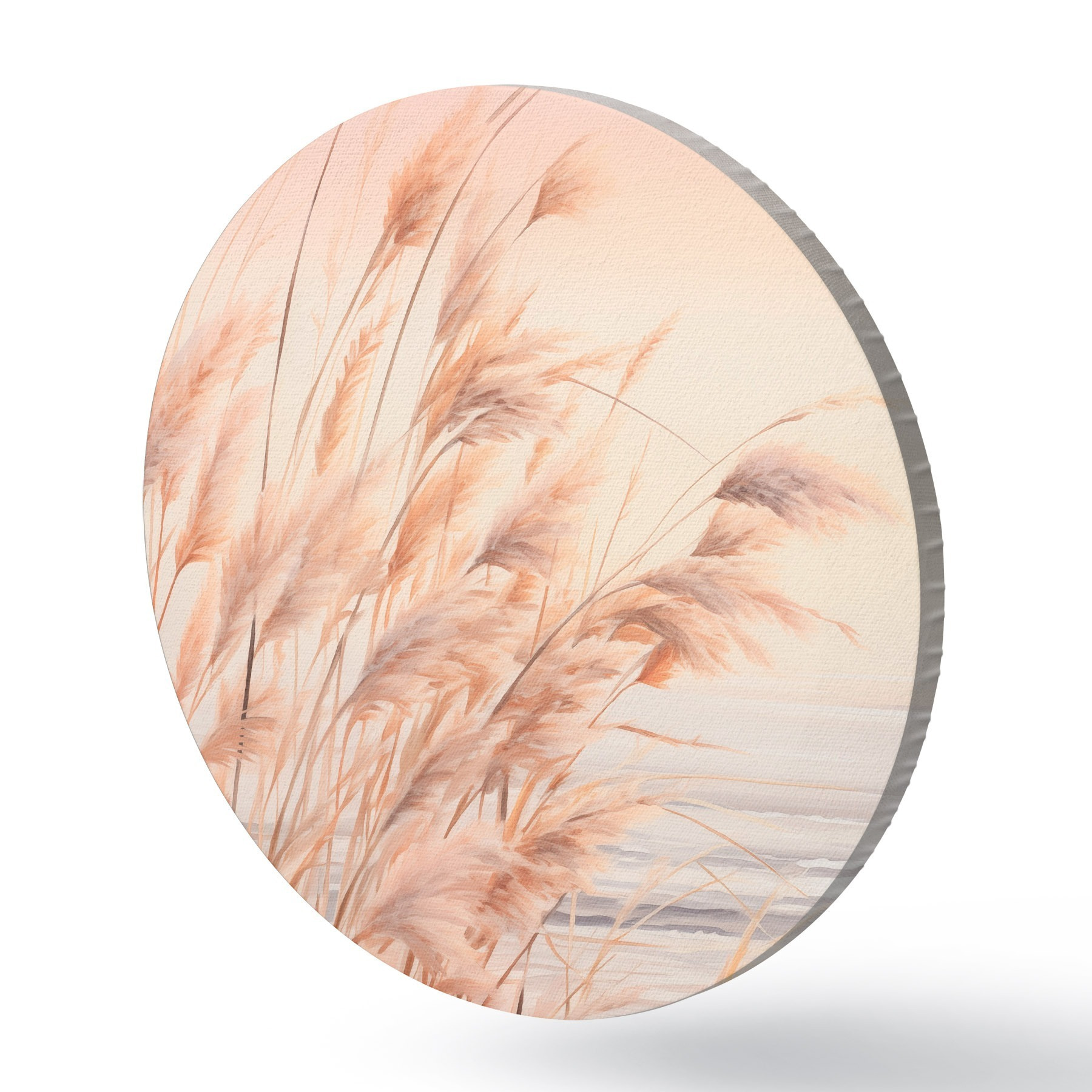 Apaļas gleznas Pampas zāle ar pasteļoranžu krāsu paleti, gaiši rozā debesis, mierīgs ainava r45934