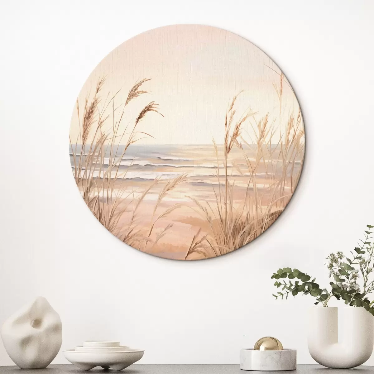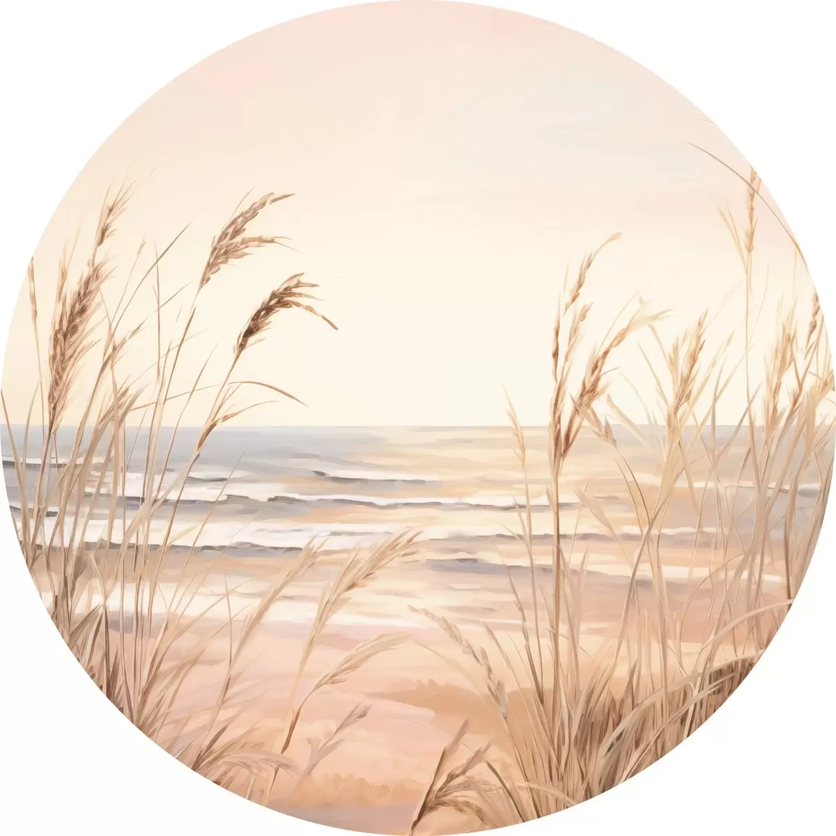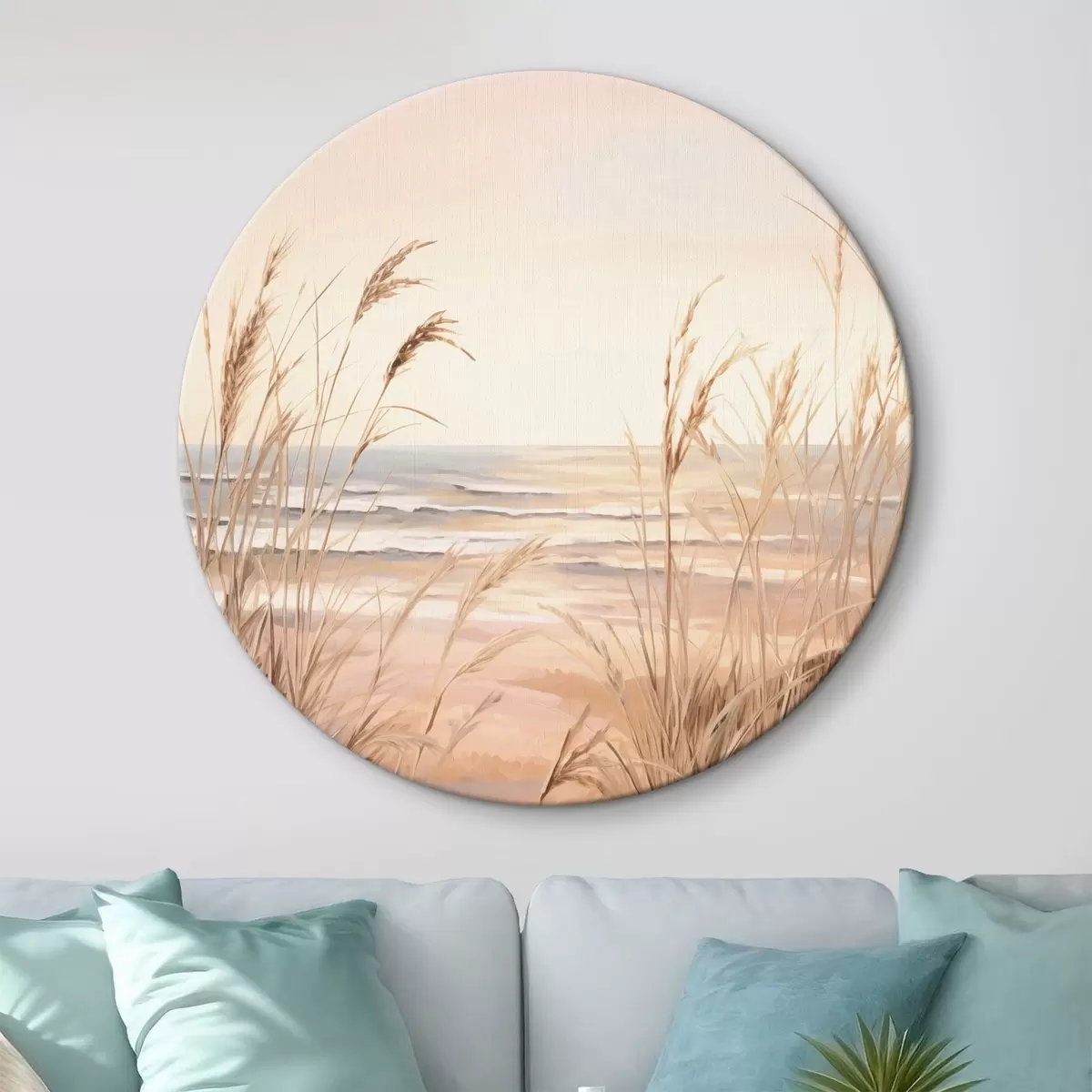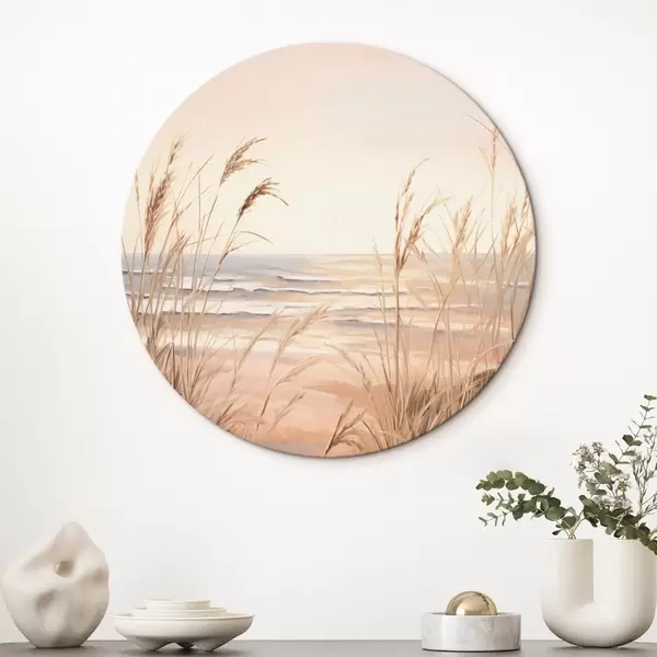 Apaļas gleznas Pampas zāle ar pasteļoranžu krāsu paleti, gaiši rozā debesis, mierīgs ainava r45935