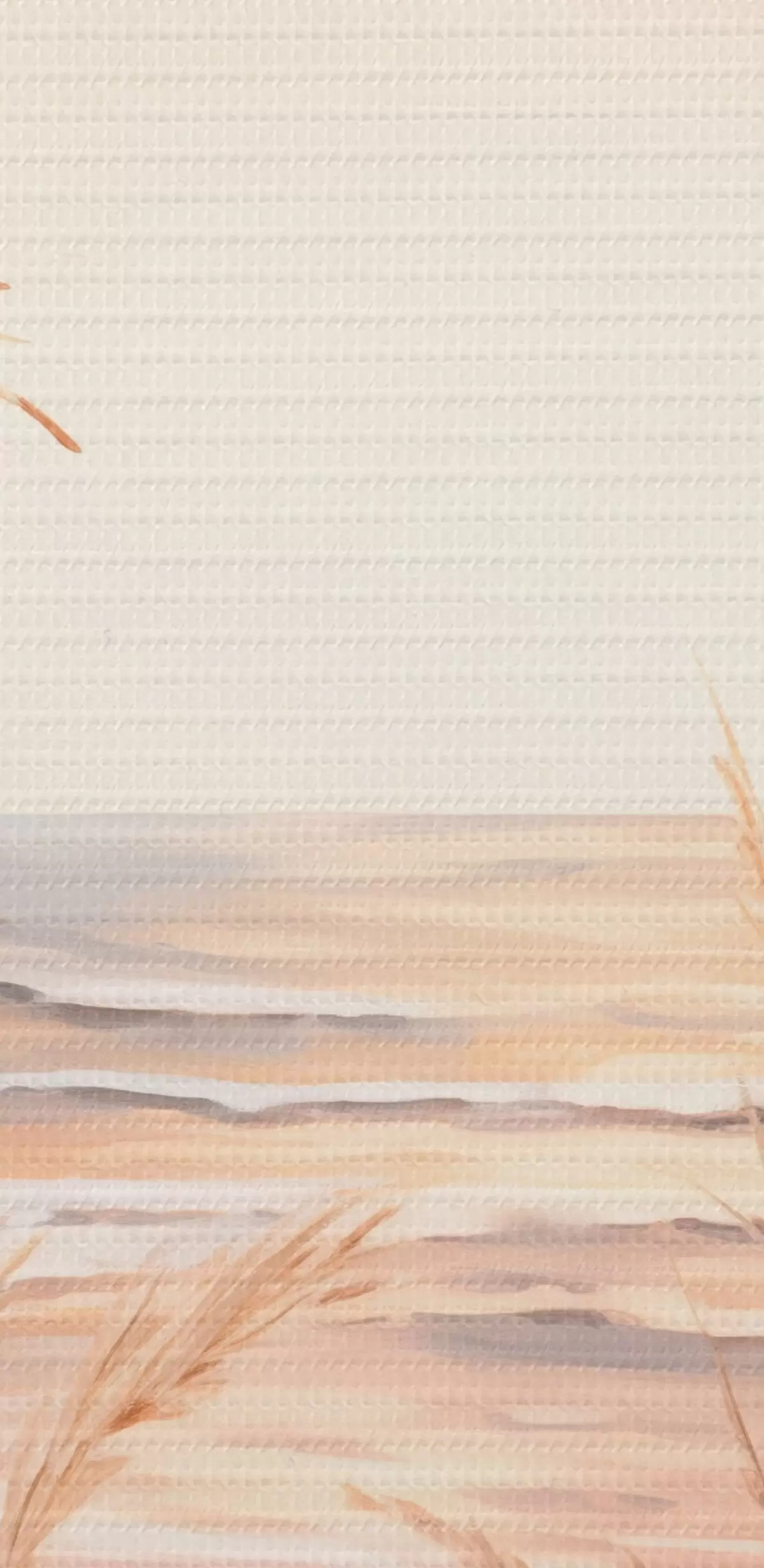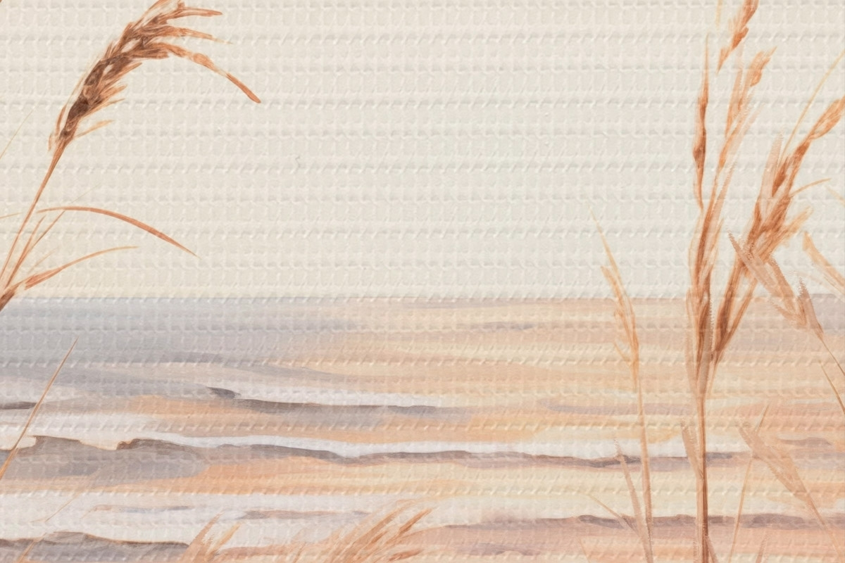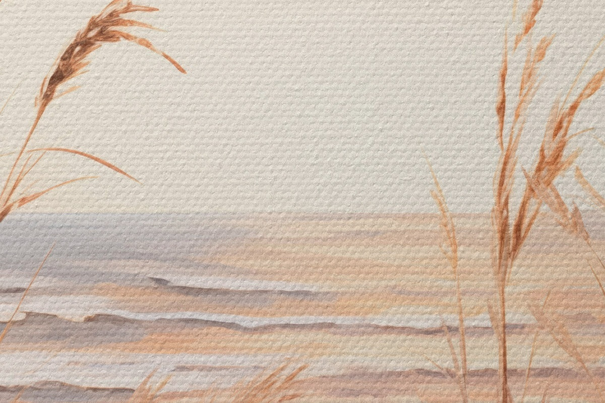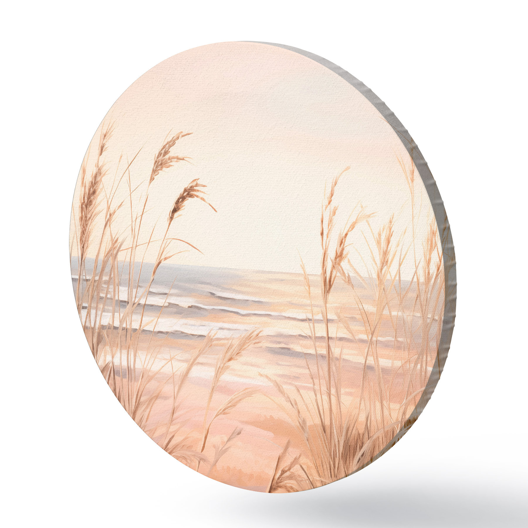 Apaļas gleznas Pampas zāle ar pasteļoranžu krāsu paleti, gaiši rozā debesis, mierīgs ainava r45935
