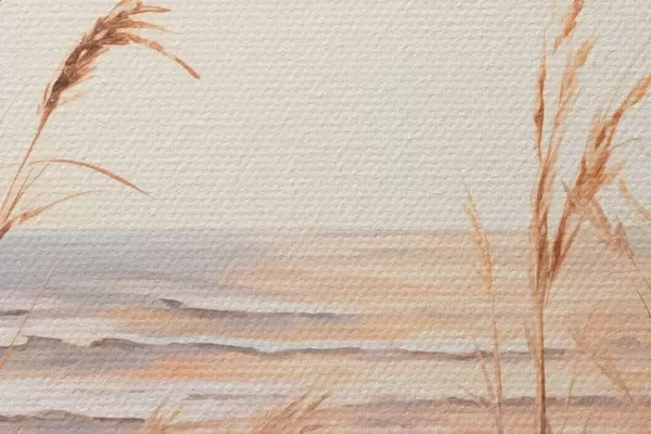 Attēls Pampas zāle ar pasteļoranžu krāsu paleti, gaiši rozā debesis, mierīgs ainava Nr r45935
