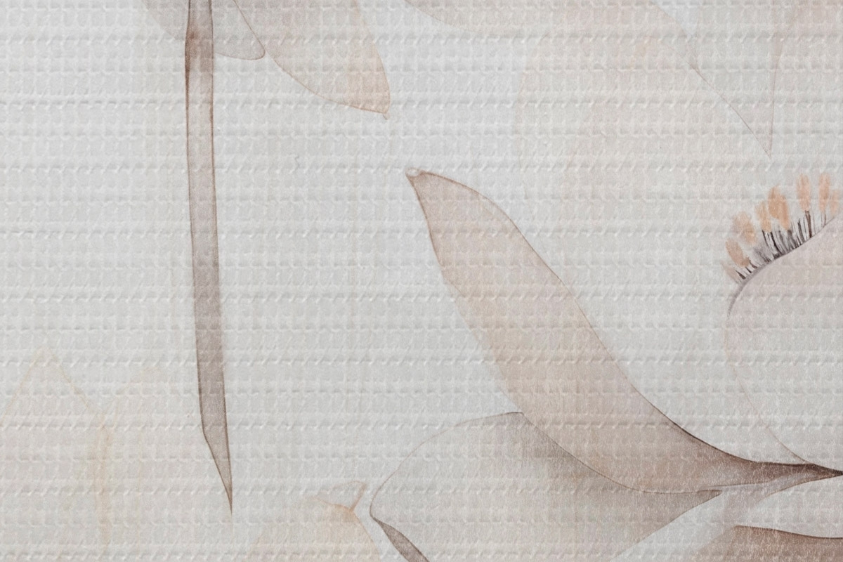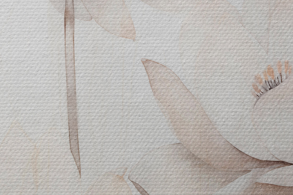 Attēls Baltas teksturētas lotosa ziedi ar tumšām lapām, gaišs fons, minimālistisks dizains Nr r45936