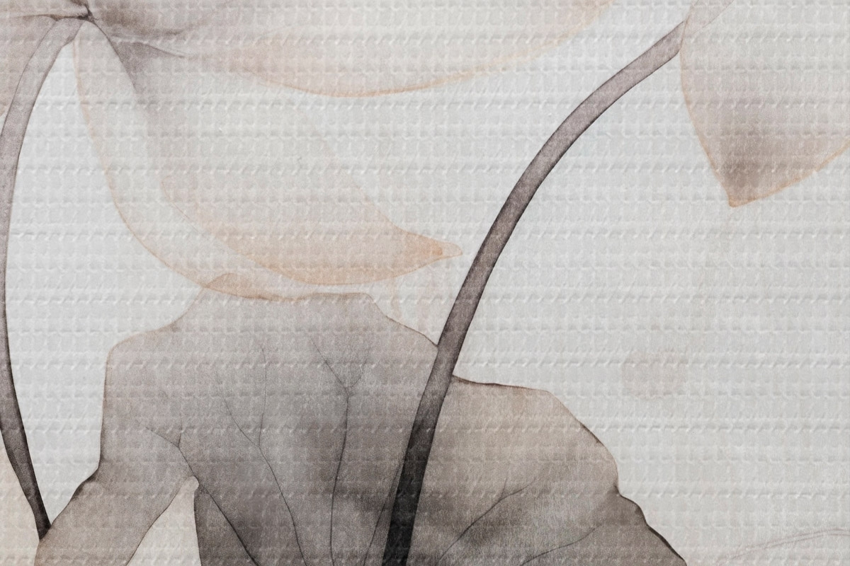 Attēls Baltas teksturētas lotosa ziedi ar tumšām lapām, gaišs fons, minimālistisks dizains Nr r45937