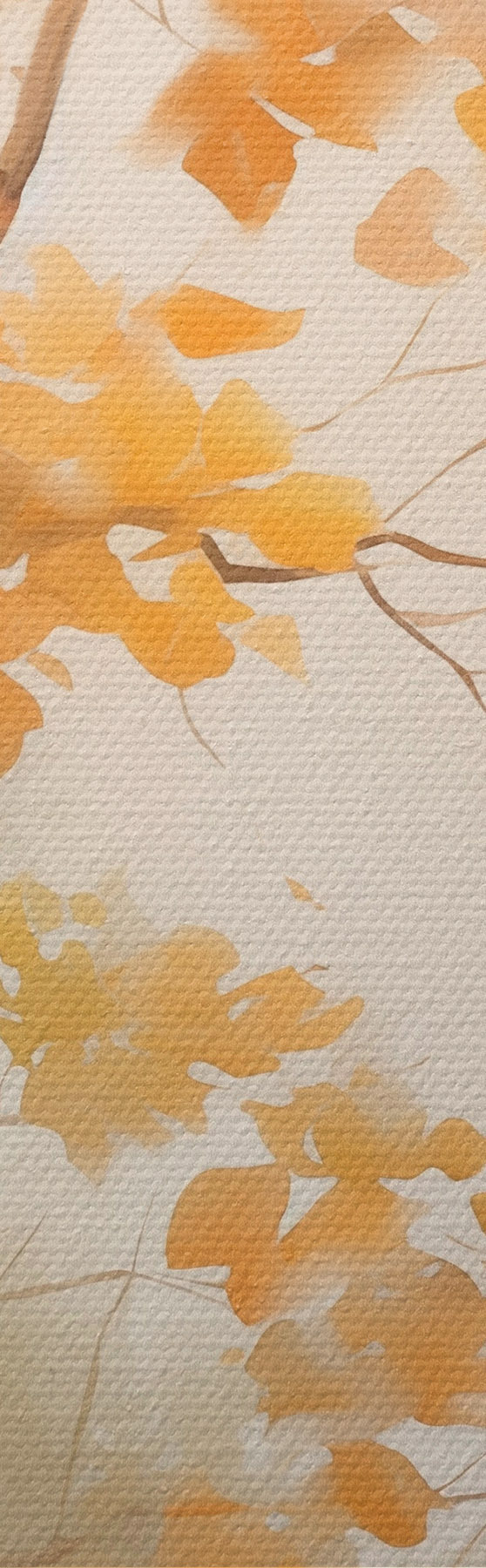 Attēls Rudens koku zari ar oranžām lapām mežā ar maigu gaismu Nr r45940