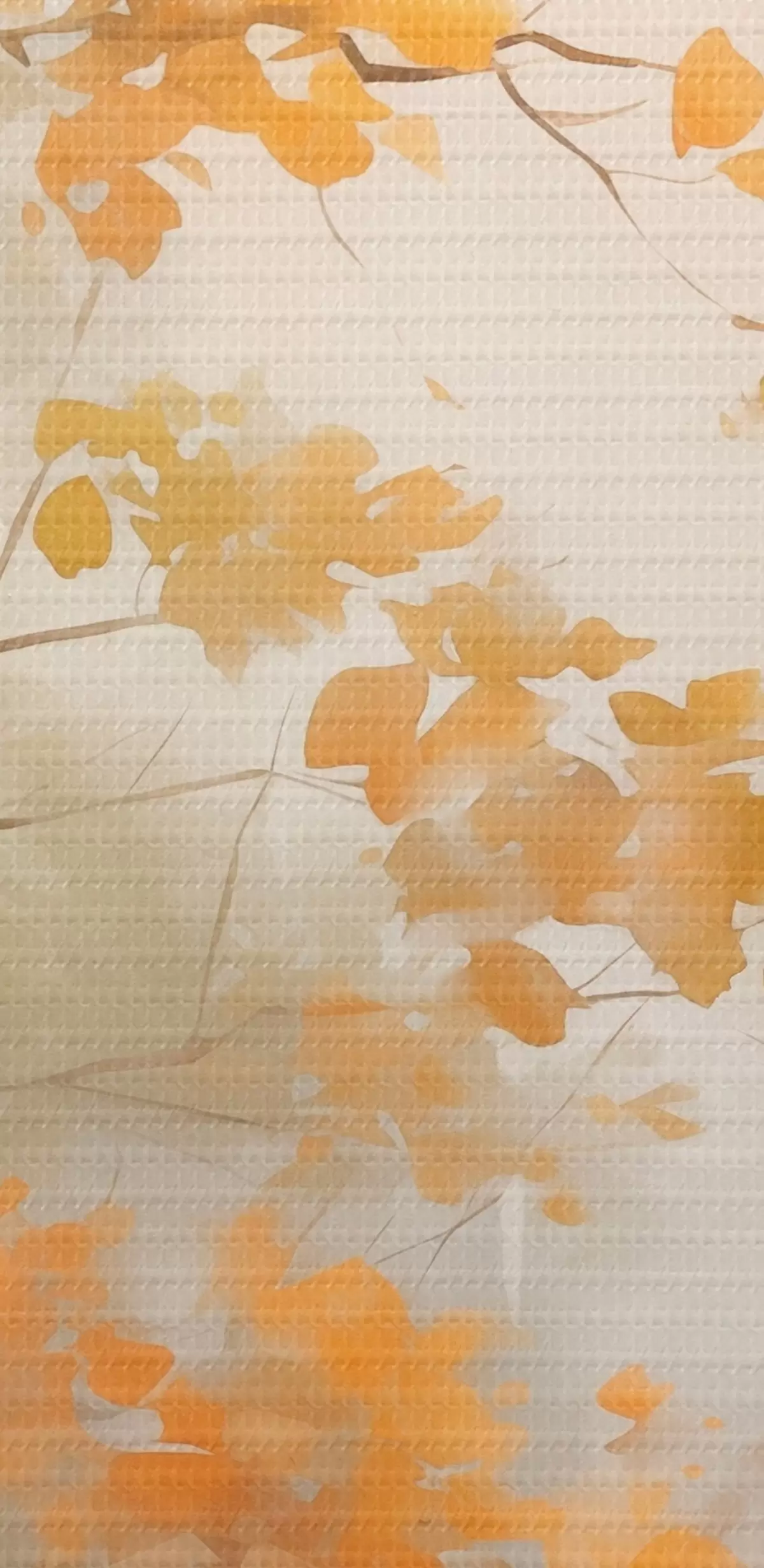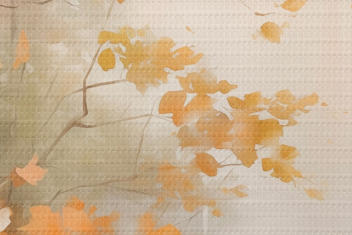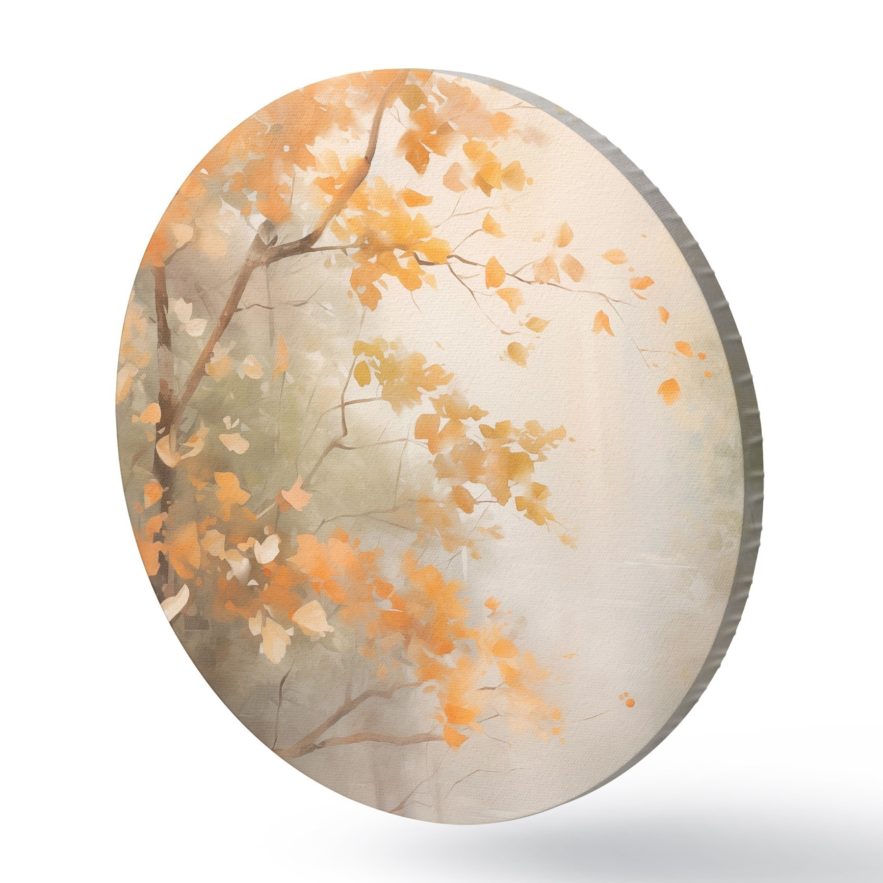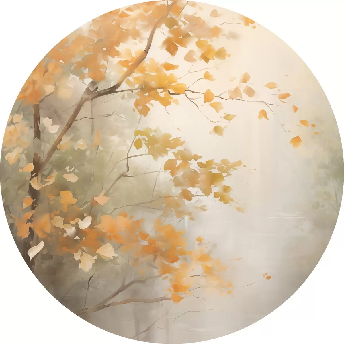 Apaļas gleznas Rudens koku zari ar oranžām lapām mežā ar maigu gaismu r45940