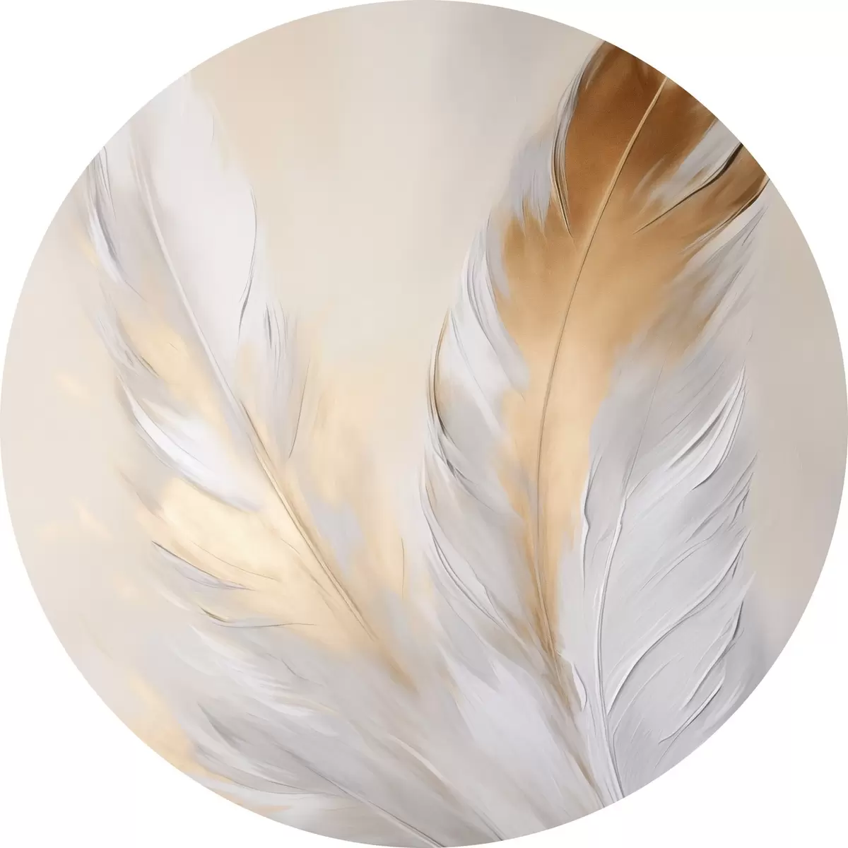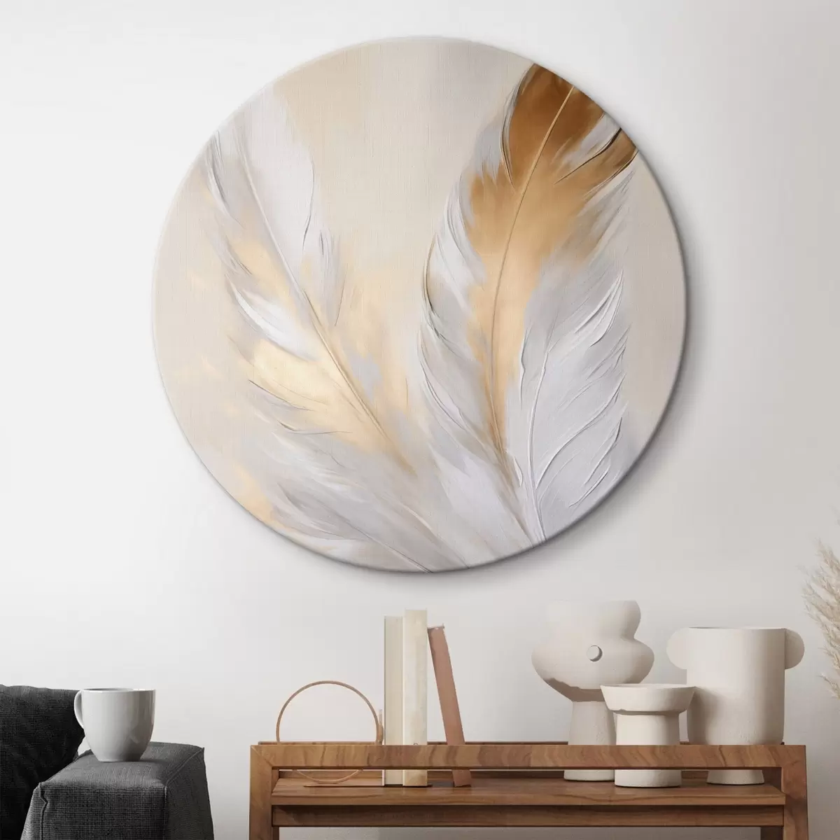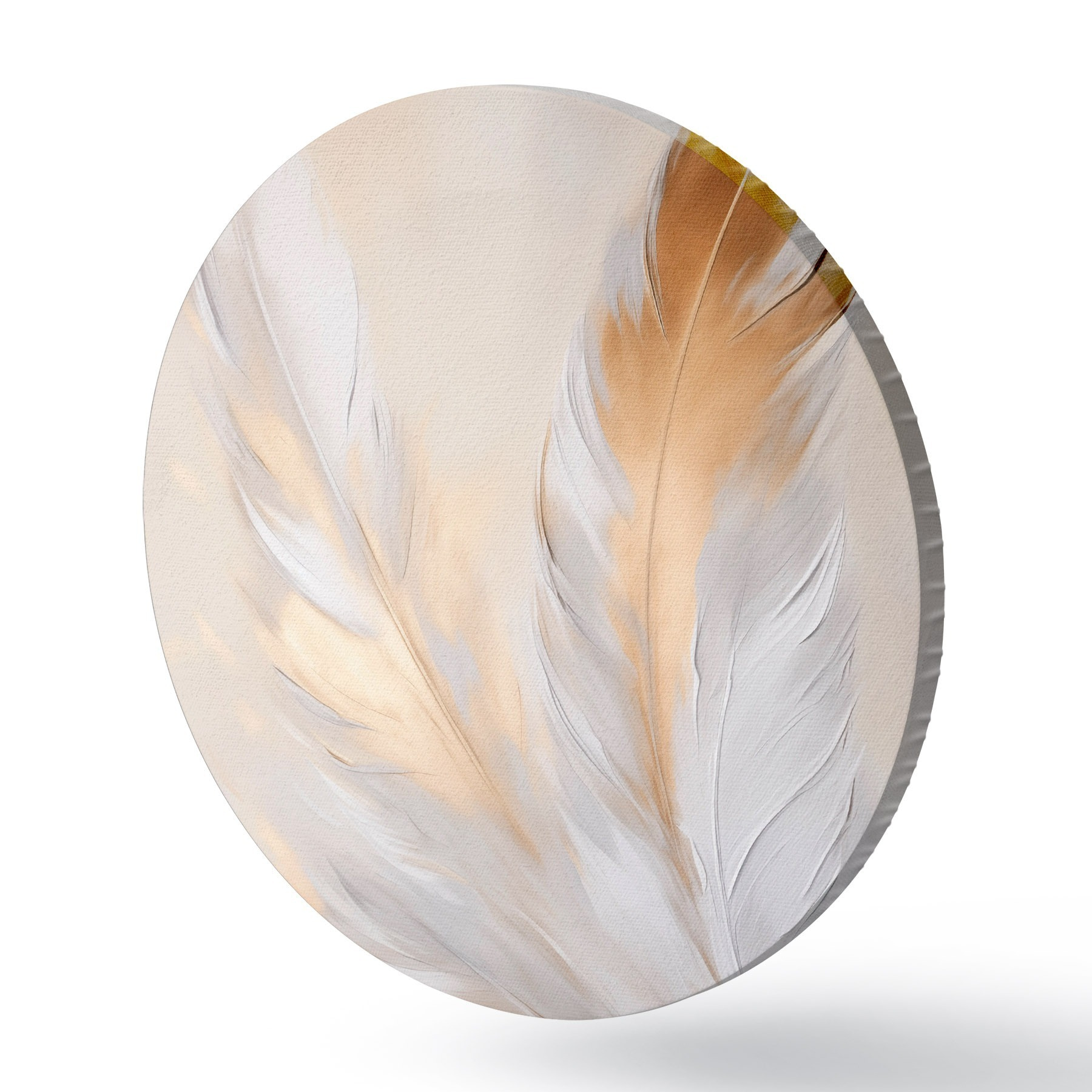 Apaļas gleznas Spalvas ar oranžiem akcentiem, maigs apgaismojums, teksturēta minimālisma kompozīcija, modernā māksla r45944