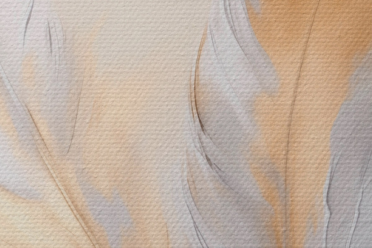 Attēls Spalvas ar oranžiem akcentiem, maigs apgaismojums, teksturēta minimālisma kompozīcija, modernā māksla Nr r45944